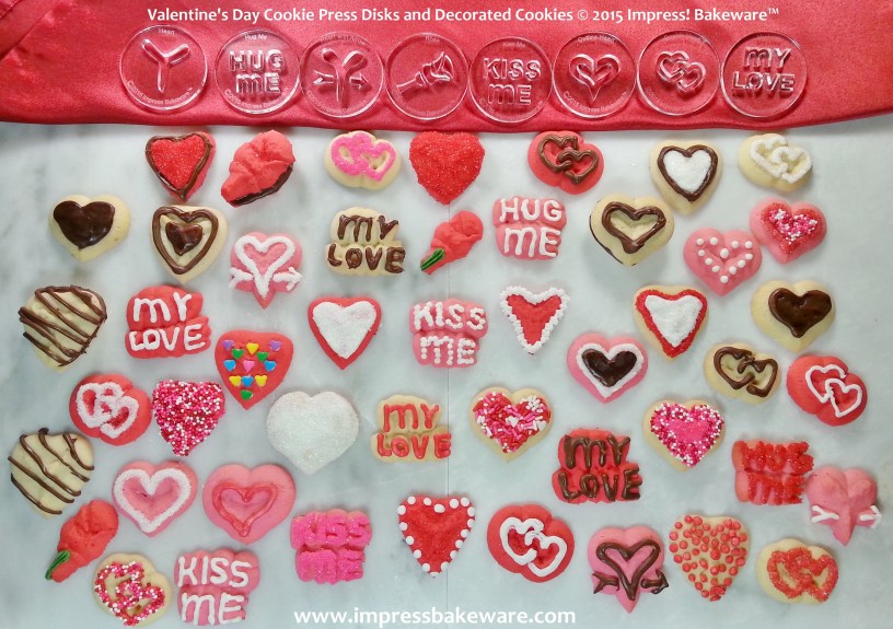 These fun, colorful cookies are made with the Valentine’s Day Cookie Press Disks. These light, delicate cookies are simple to make and fun to decorate. Whip up a batch for the kids’ class party or for that special someone. All you’ll need is a cookie press, the disks, gel food coloring, some icing & sugars for decorating, and the basic ingredients listed below.