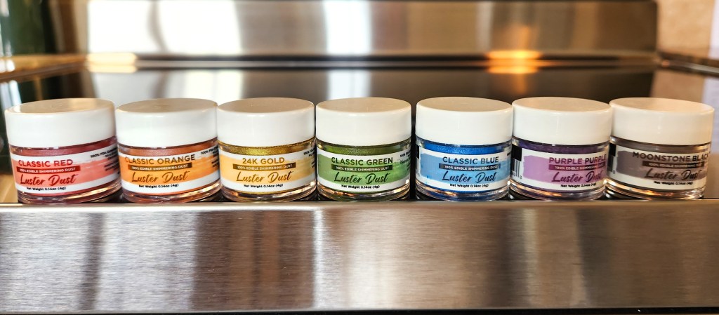 2022 NOTE: We are now selling luster dusts! We’ve partnered with Bakell, who makes exquisite dusts here in the US. Their colors are luxurious and the dusts are fabulous to work with. They’re on our website and Etsy shop. 🙂