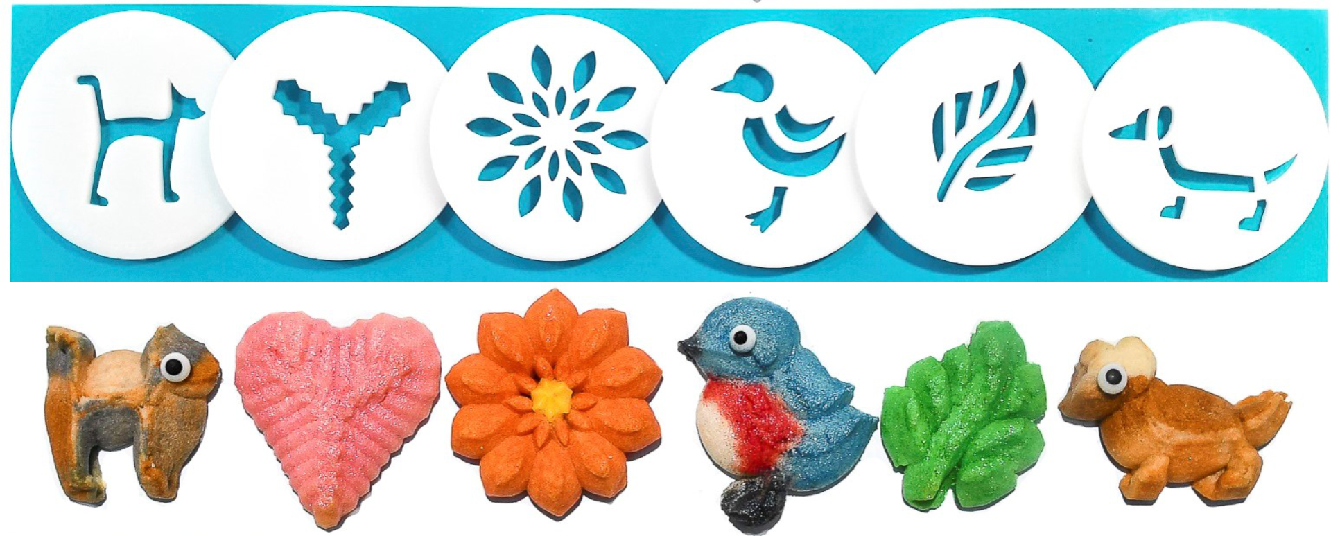 The 12 Disks that come with our cookie press- also sold without the press on our website and Etsy shop:
