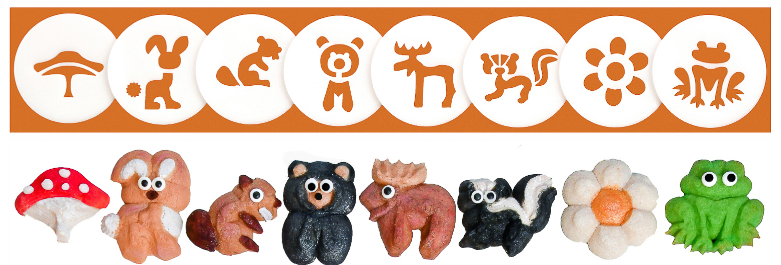 I pulled from several of our sets as there are critters scattered about in many of our collections. I used all of the shapes in the Woodland Set, some from our Impress Cookie Press Box Set, the cardinal/bird from the Christmas Ornaments Set, and the dove from the Wedding Set (these sets shown at bottom of post).