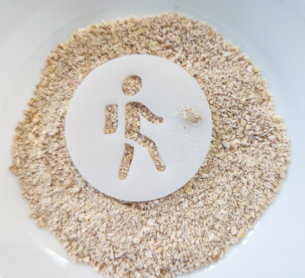 Use a food processor/blender/magic bullet type appliance to make the granola VERY finely ground. The pieces must be small enough to pass through the shape holes, so pull out any pieces that are too big.