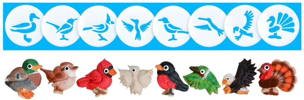 To get the fancy decorated look in the top photo: Color some plain spritz cookie dough green for the hummingbird, red for cardinal and robin, then paint with EDIBLE pearl dust or matte petal dust for accent colors. I painted the others on a plain cookie.