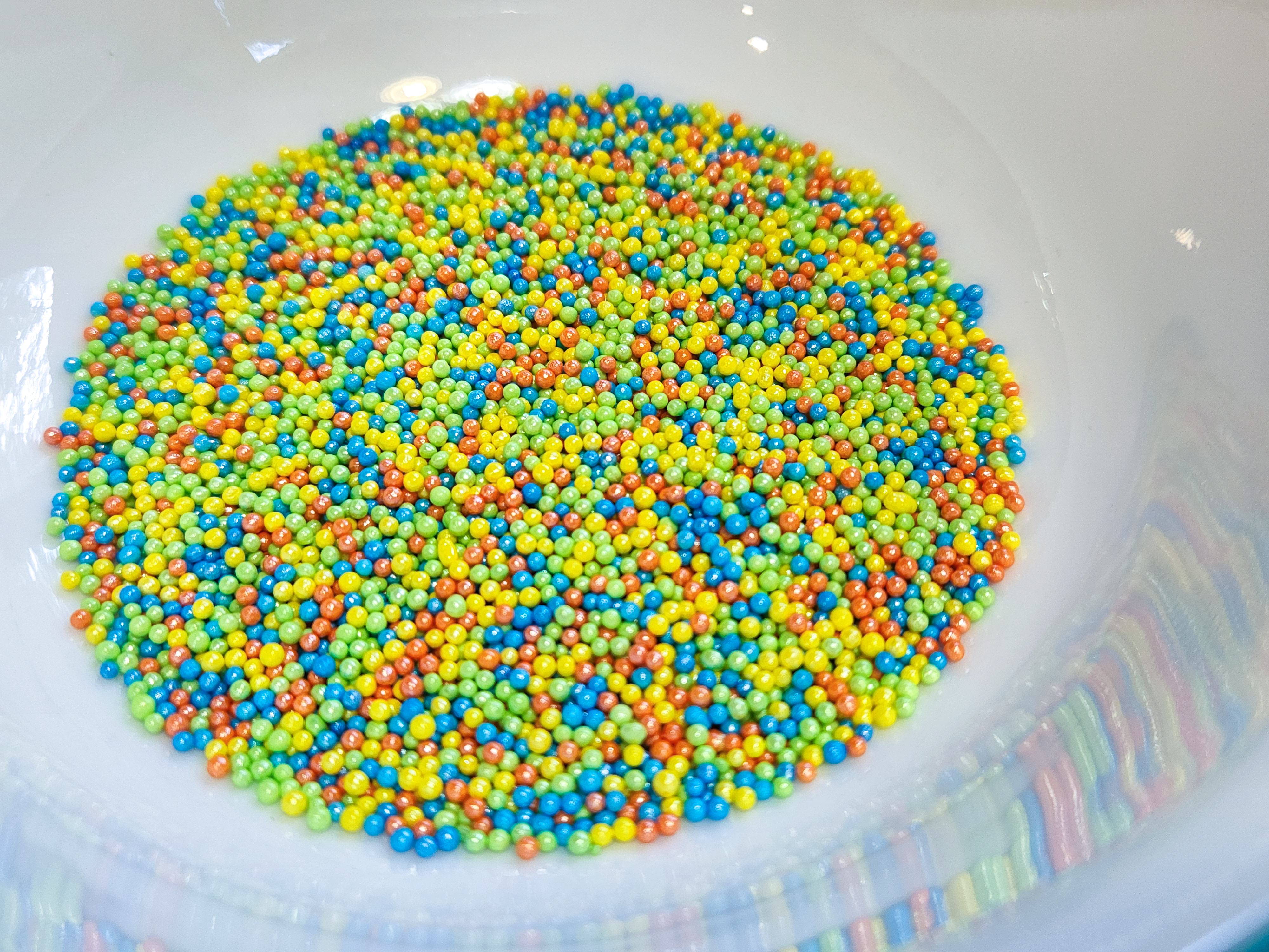 For the Space Confetti Spritz recipe: Add a few tablespoons or more (depending on how many specks of color you want!) of colorful nonpareils to any plain dough. I Used the Very Vanilla Butter Cookies recipe from the Christmas Puppies post. My Happy New Year 2021! post used a cream cheese recipe with confetti. You could use either one!