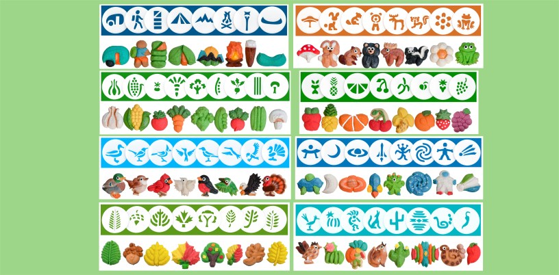 Introducing: 1. Camping, Hiking, & Outdoors 2. Woodland Two 3. Veggies 4. Fruits 5. Birds 6. Space 7. Southwest 8. Leaves