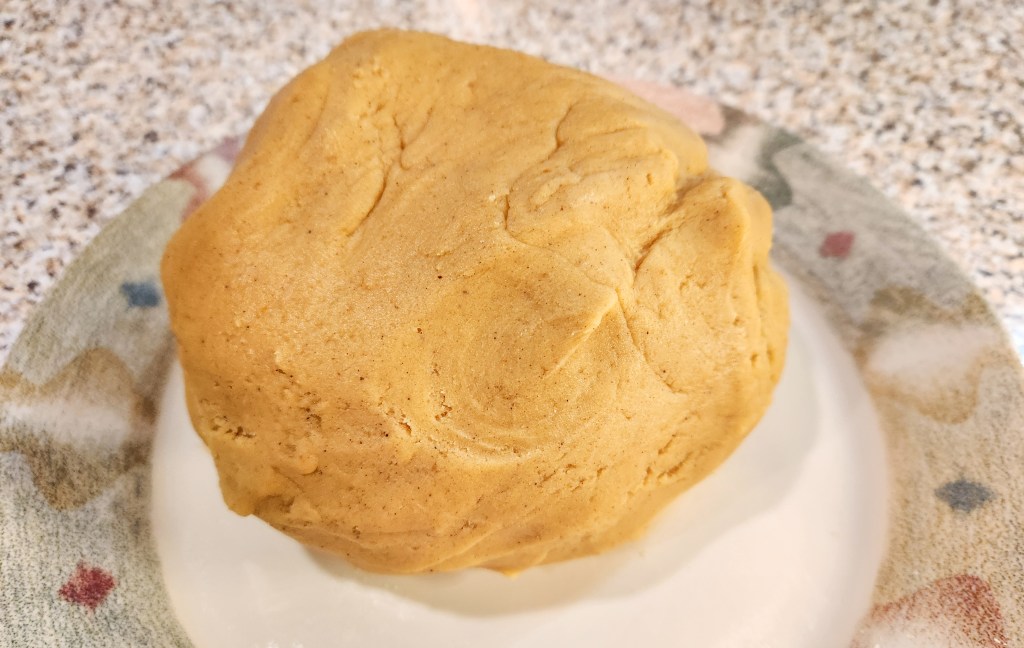 In a large bowl, combine flour, spices, and salt. Set aside. Using an electric mixer, cream the butter. Add the sugars and cream together very well, until it is light and fluffy. Add the pumpkin, then the vanilla, and the egg, re-creaming the mixture after each addition. Add the flour mixture slowly, mixing on a slow speed until it comes together. Make sure all of the flour is incorporated evenly. It may seem very crumbly so knead it by hand to make sure it is uniformly smooth and mixed.