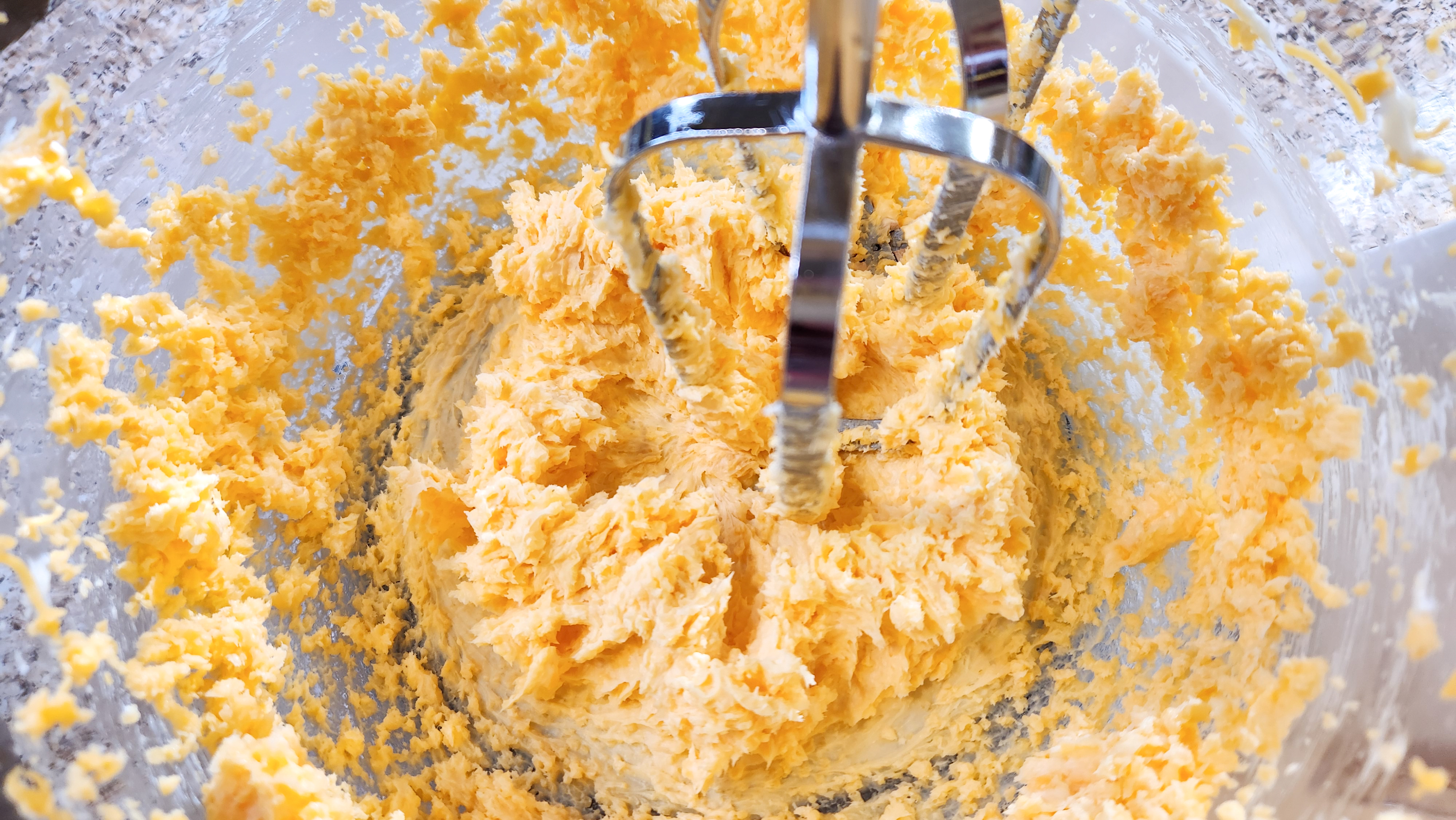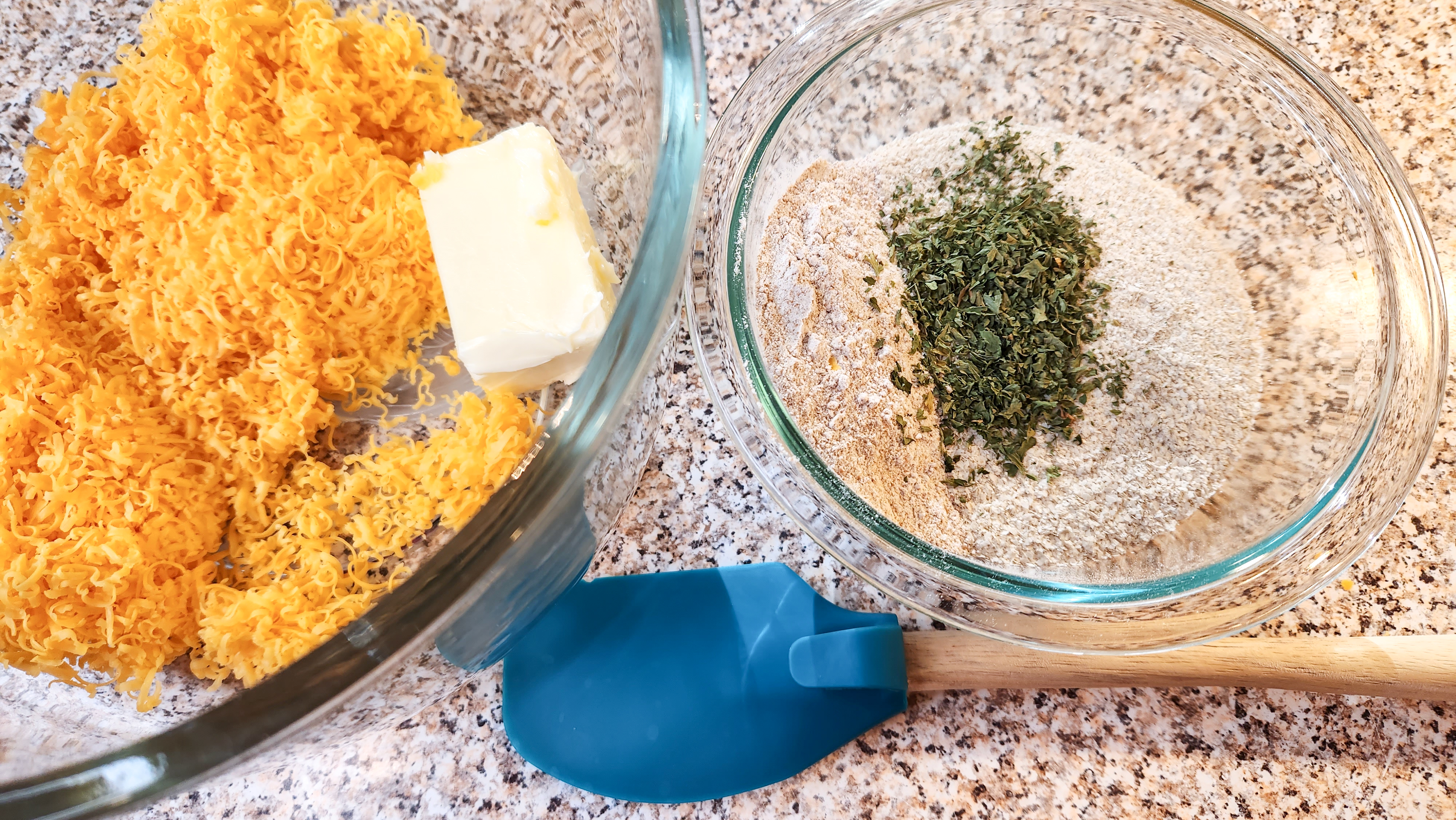 In a medium bowl mix all the dry ingredients together and set aside. Shred the cheddar cheese. I use the second smallest holes on a manual grater.