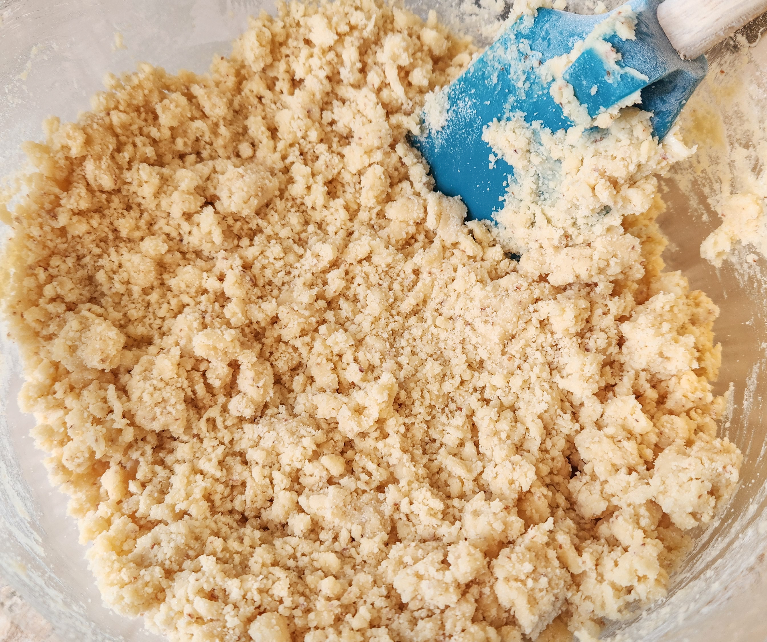 Add the flour mixture slowly, mixing on a slow speed until a workable dough forms. Make sure all of the flour is incorporated evenly. Knead it by hand until it is uniformly smooth and mixed. This dough can seem crumbly at first but it kneads together well. Perfect rolling dough has a clay-like, workable texture that is not too sticky or too stiff. If it feels incredibly difficult to knead, it is probably too stiff. Add a little water or vanilla extract a teaspoon at a time until you achieve a workable texture. It should be stiff, but not impossible! If it is too easy to knead or is sticking to your fingers, it is probably too soft. Add flour a tablespoon at a time until it is workable like clay. This recipe can be a little finicky with the flour amount, depending on how much moisture is in the almond filling, how dry the air is, etc. Don’t be surprised if you need to add some flour to get a good texture that holds up to embossing and cutting out!