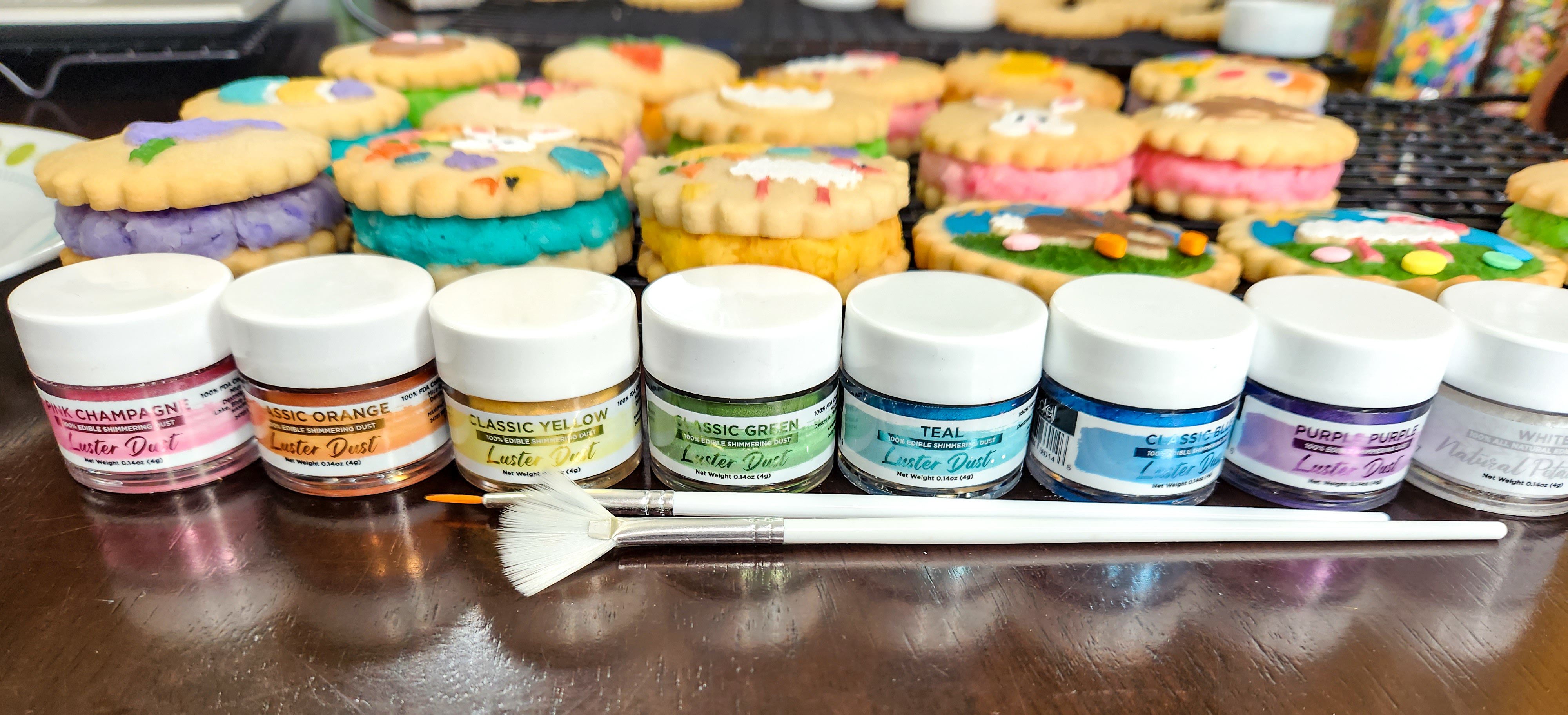 NOTE: Always make sure you are using EDIBLE dusts! Some luster/pearl/glitter dusts on the market are “non-toxic” but that does not mean they are edible. Plenty of brands have actual food ingredients and are marked “edible”. ONLY use those for safety’s sake!