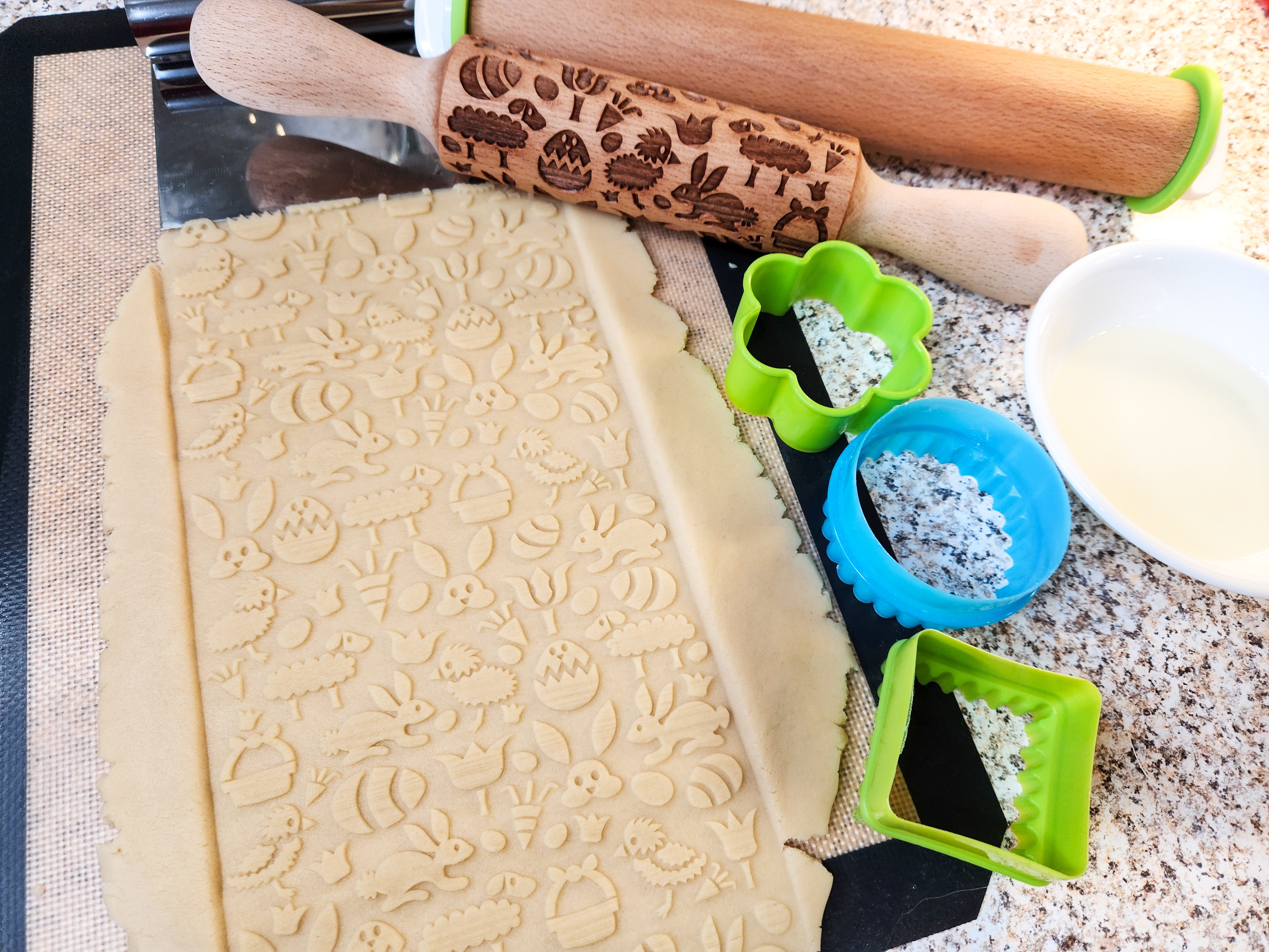 Let’s bake! I have videos below of how to roll with our embossed pin and stamp with the cookie stamps if you’re new to this!