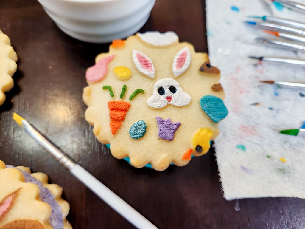 The decorating for these is truly easy. I cannot paint worth a darn but I can color a coloring book and do paint-by-number. These cookies are the same way! You’re just adding a little color to designs already on the cookies. Super easy and honestly fun!