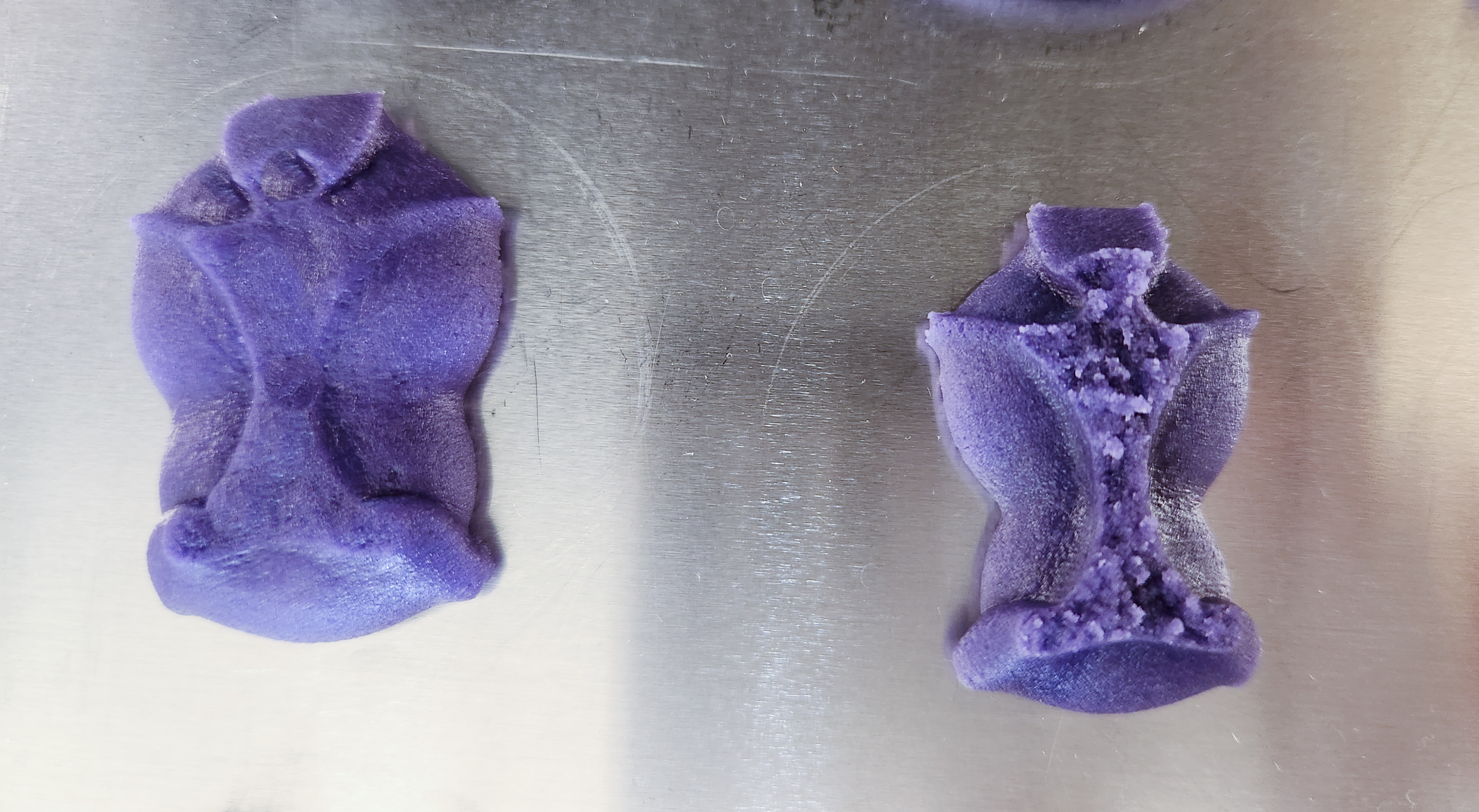 NOTE: the Bubbling Cauldron can be tricky to press if your dough is warm or too soft or sticky, which can happen when coloring dough. Add flour to a small amount of dough for those should it become a problem.
