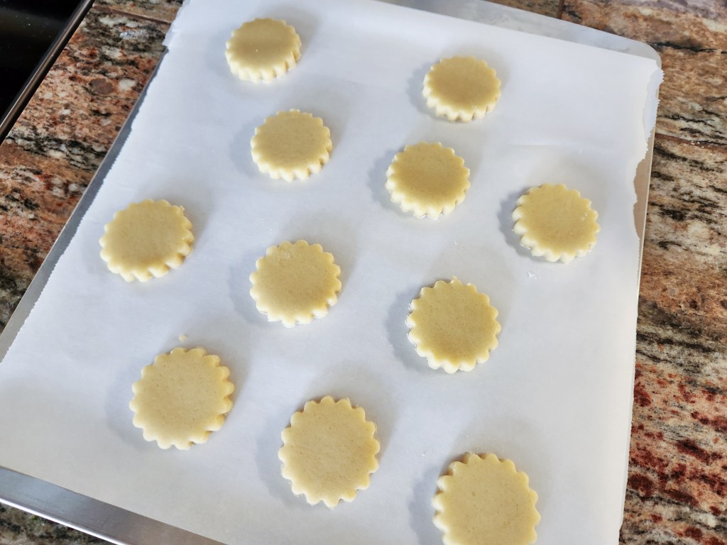 If you are making sandwich cookies, roll out more dough and cut shapes as needed to make enough bottom cookies. Off to parchment paper on a cookie sheet and bake as described above.