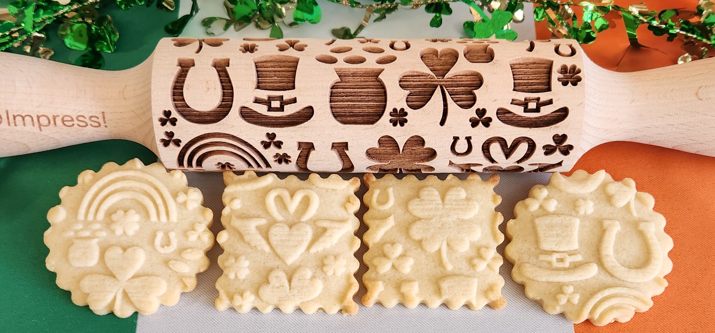 Try our 2 NEW embossed rolling pins: Spring Flowers & Butterflies, and St. Patrick’s Day!