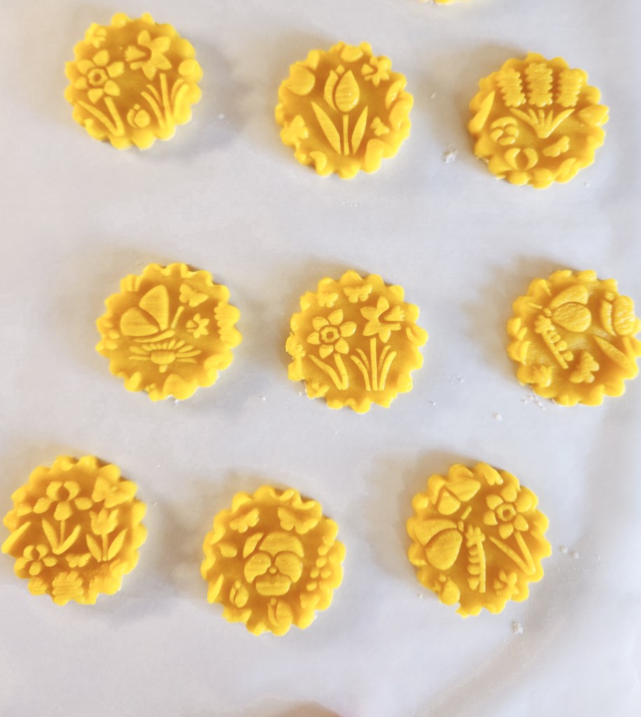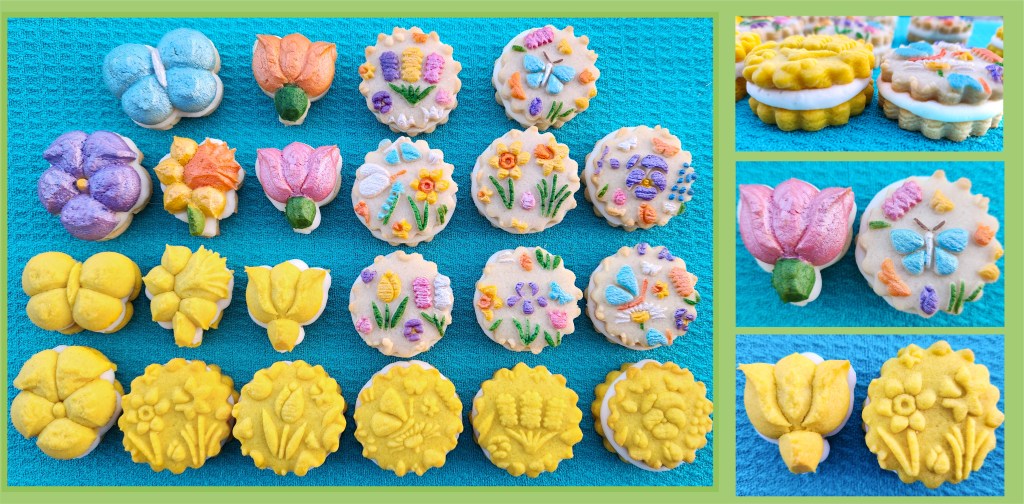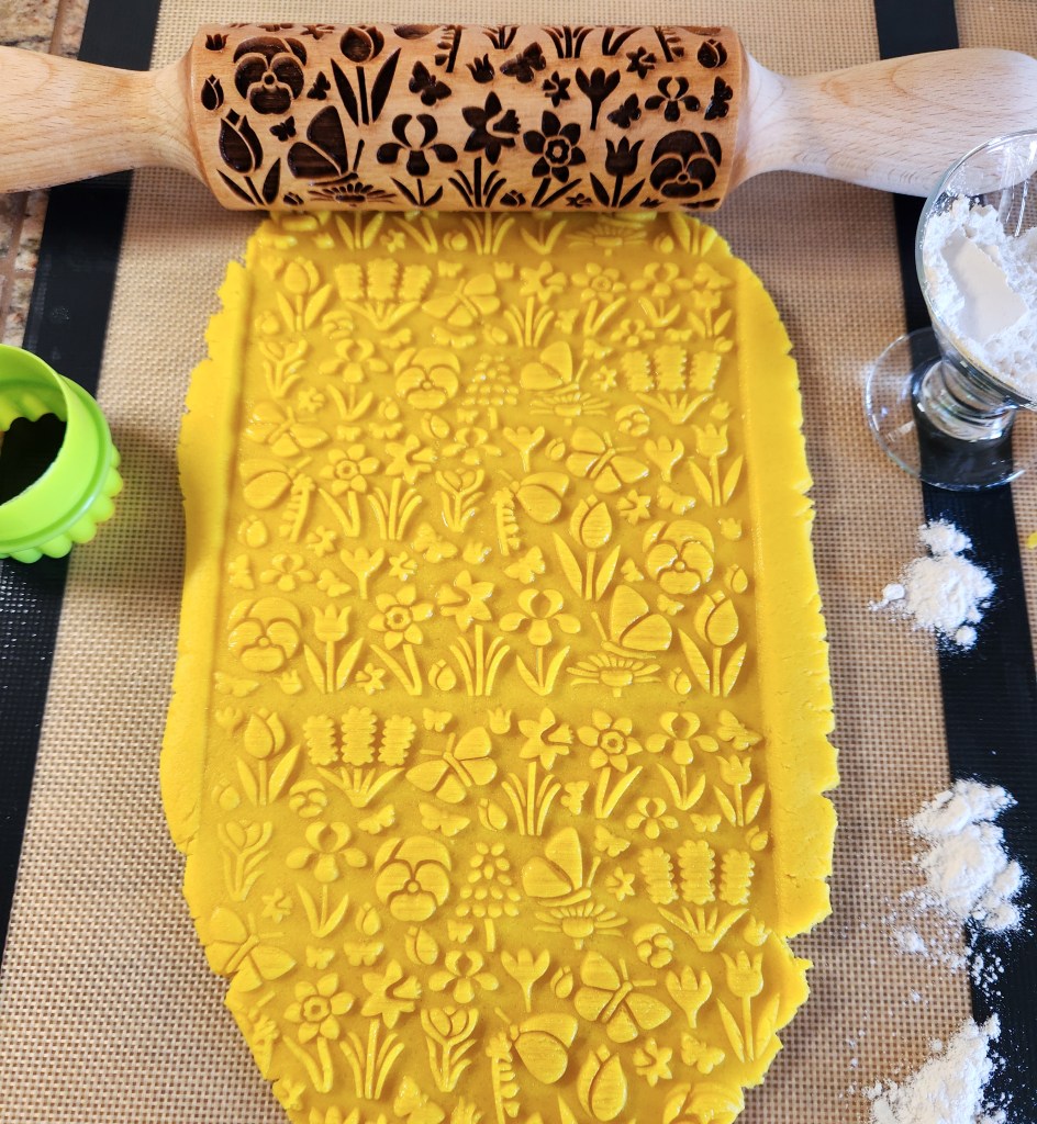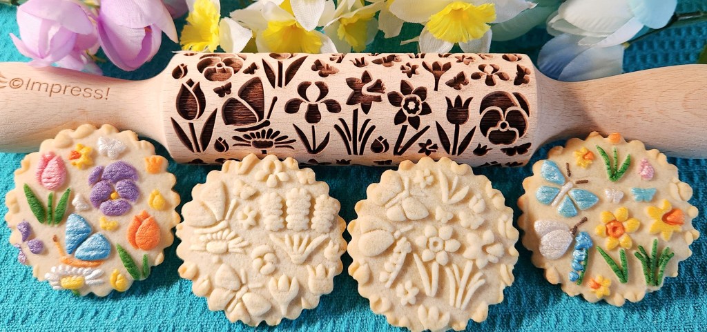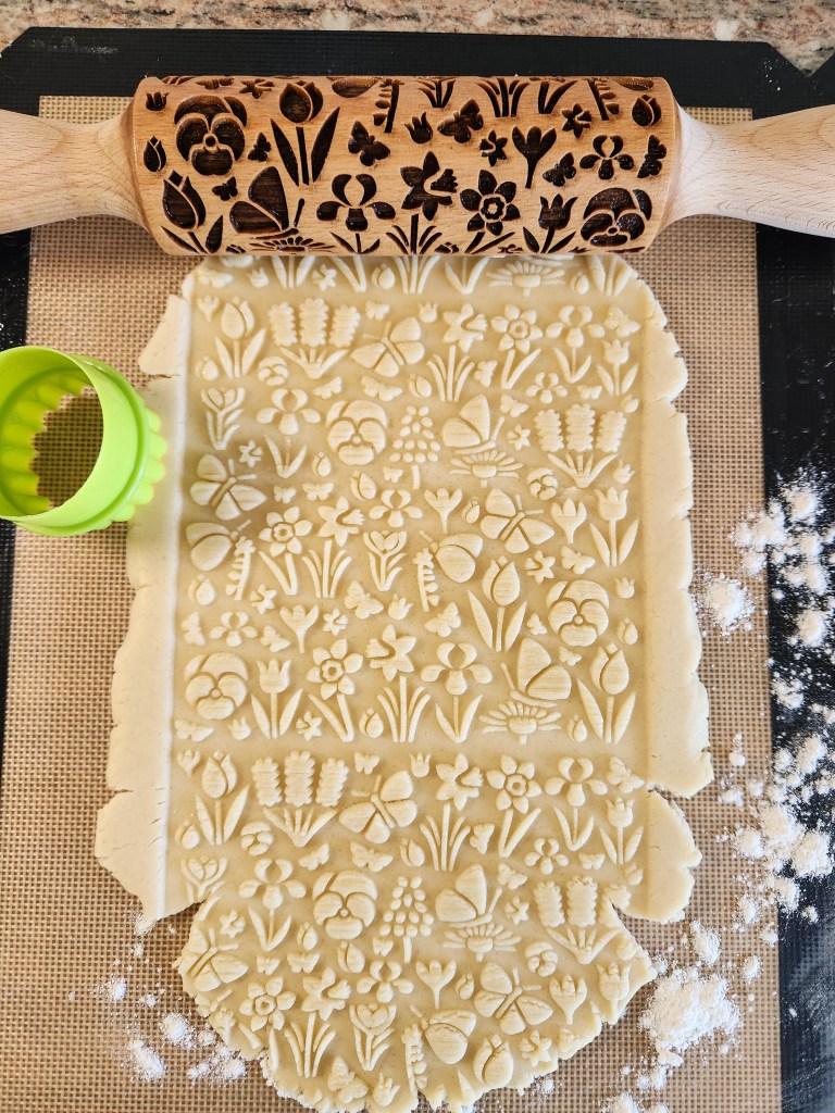 I used my newest embossed rolling pin, Spring Flowers and Butterflies, for the rolled embossed cookies.