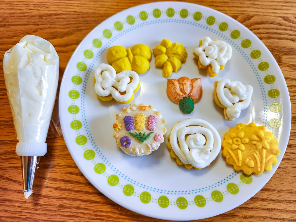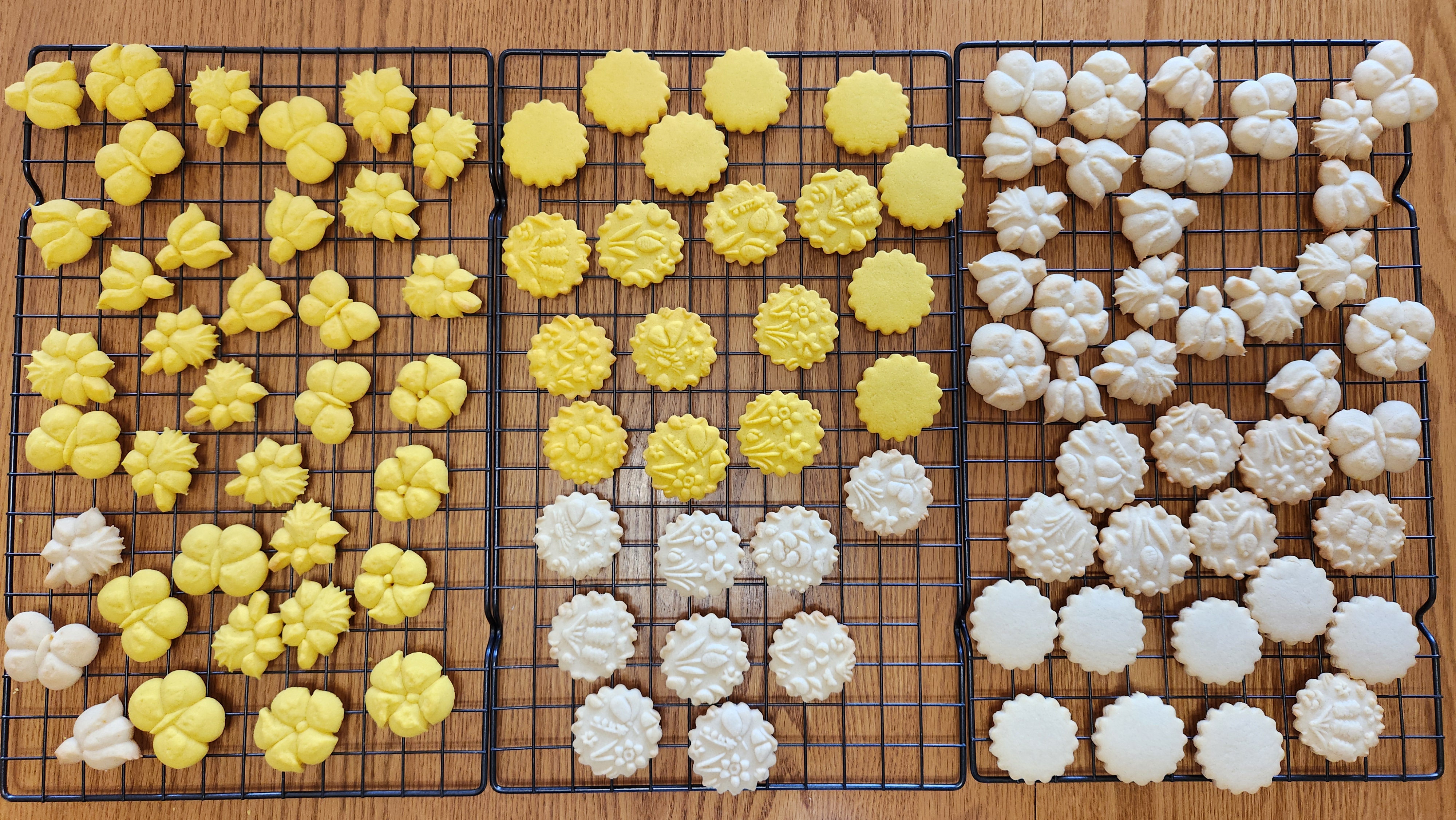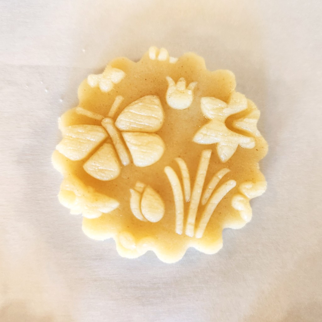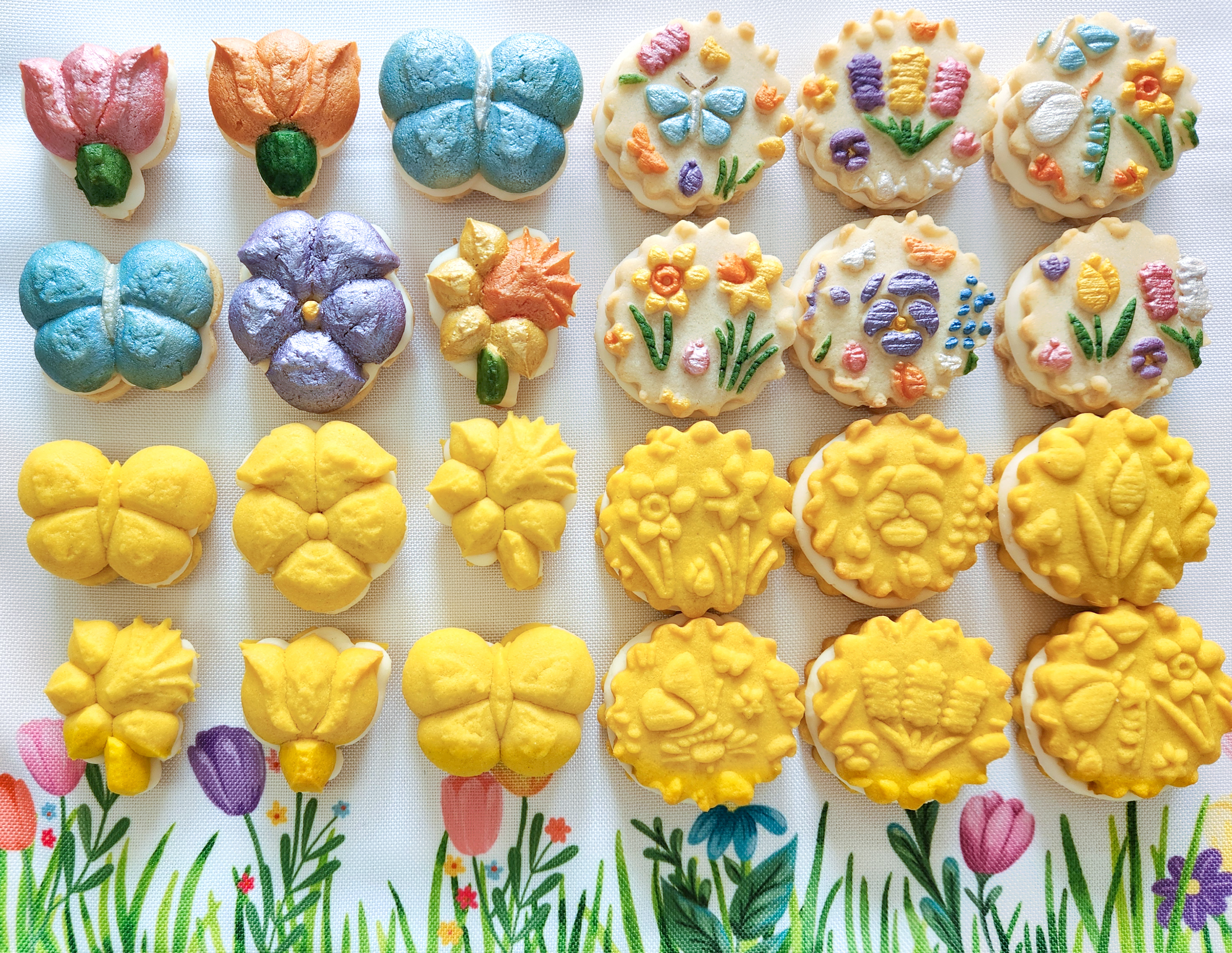 I used the Pansy, Daffodil, and Tulip Disks from our Flowers Disk Set, and the Delicate Butterfly from the Press Box Set (which can be purchased separately from our press) for the spritz cookies.