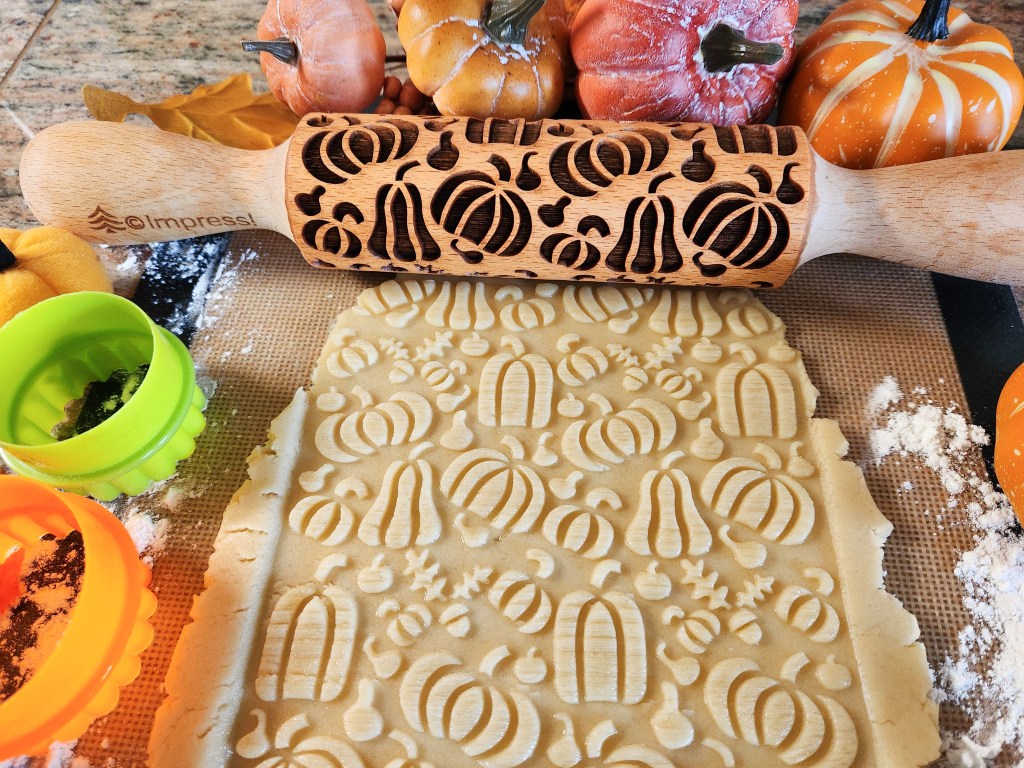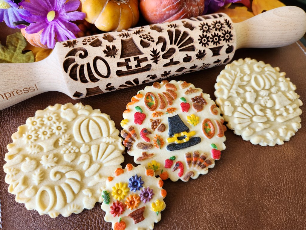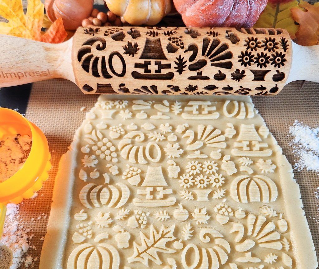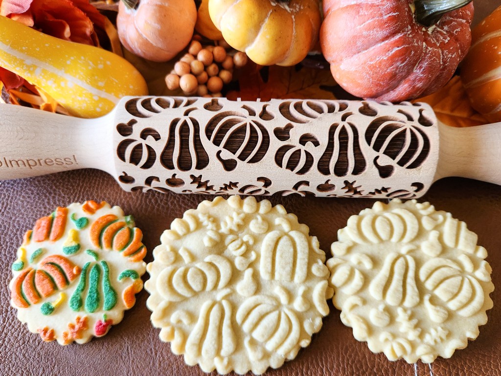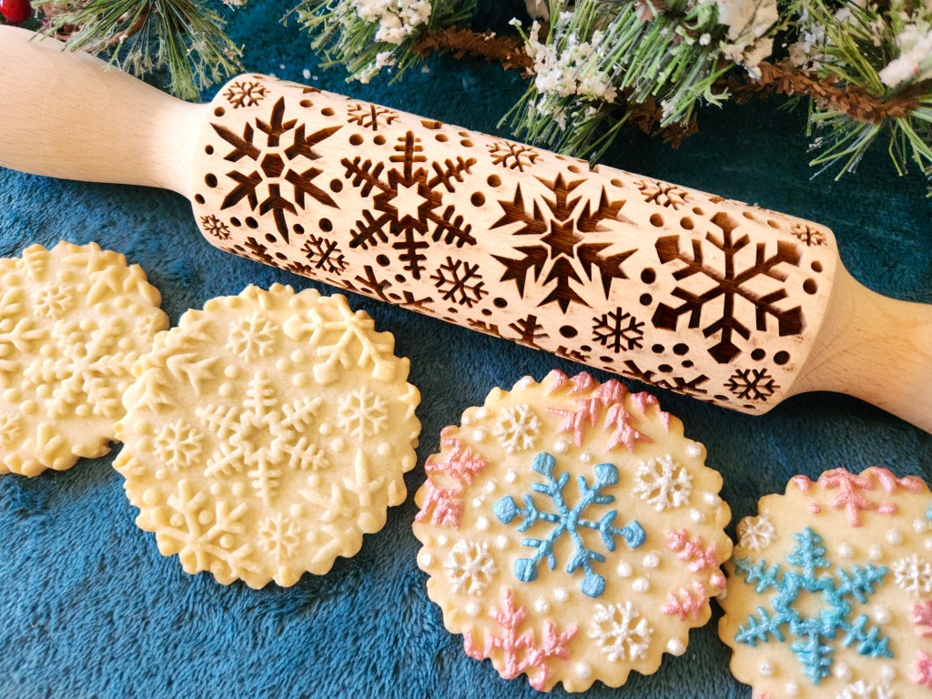 When we rolled out our embossed rolling pins 2 years ago I made pins for fall, for Christmas, with snowflakes, etc. I wanted to hit all the themes of those seasons. I’m honored and happy that the pins are so well-liked and have done well! This summer I decided to up my game and add to those initial fall-winter offerings with a new line of pins that have bigger and/or more intricate designs. (The pins themselves are the same size, the designs on them are bigger.)