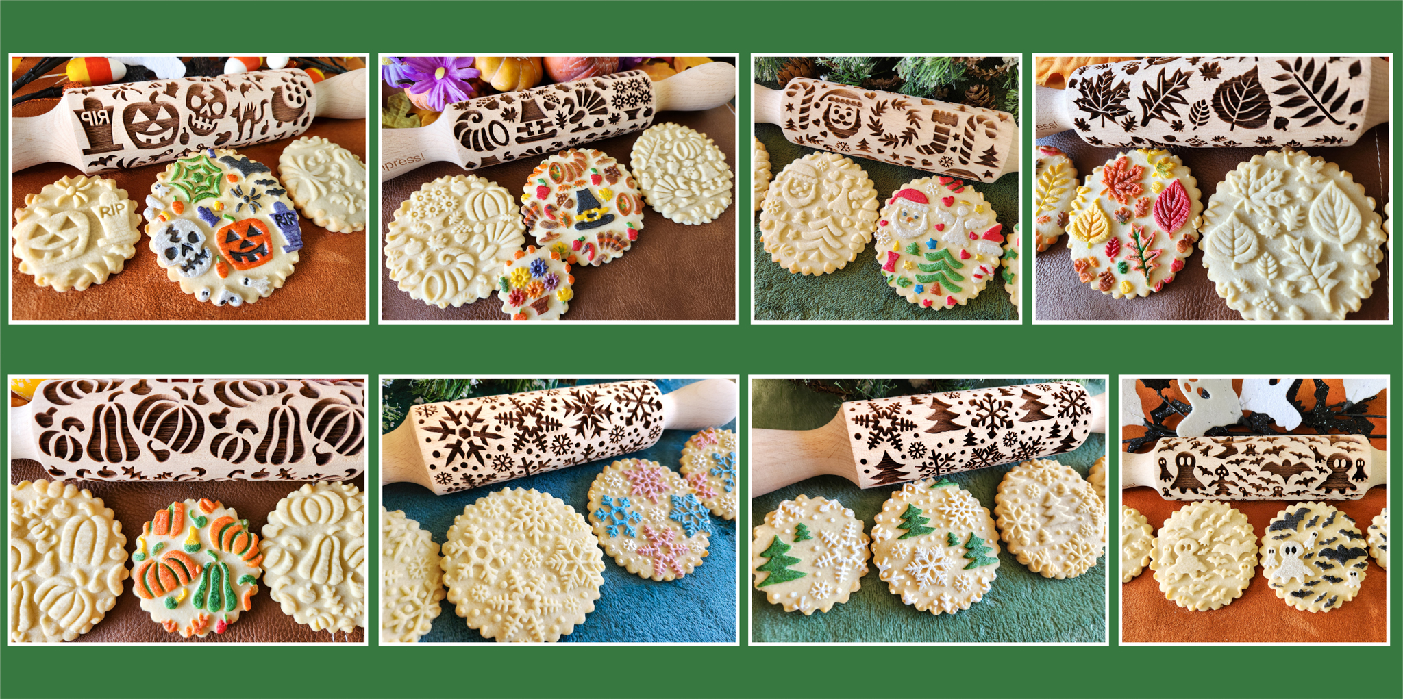 When we rolled out our embossed rolling pins 2 years ago I made pins for fall, for Christmas, with snowflakes, etc. I wanted to hit all the themes of those seasons. I’m honored and happy that the pins are so well-liked and have done well! This summer I decided to up my game and add to those initial fall-winter offerings with a new line of pins that have bigger and/or more intricate designs. (The pins themselves are the same size, the designs on them are bigger.)