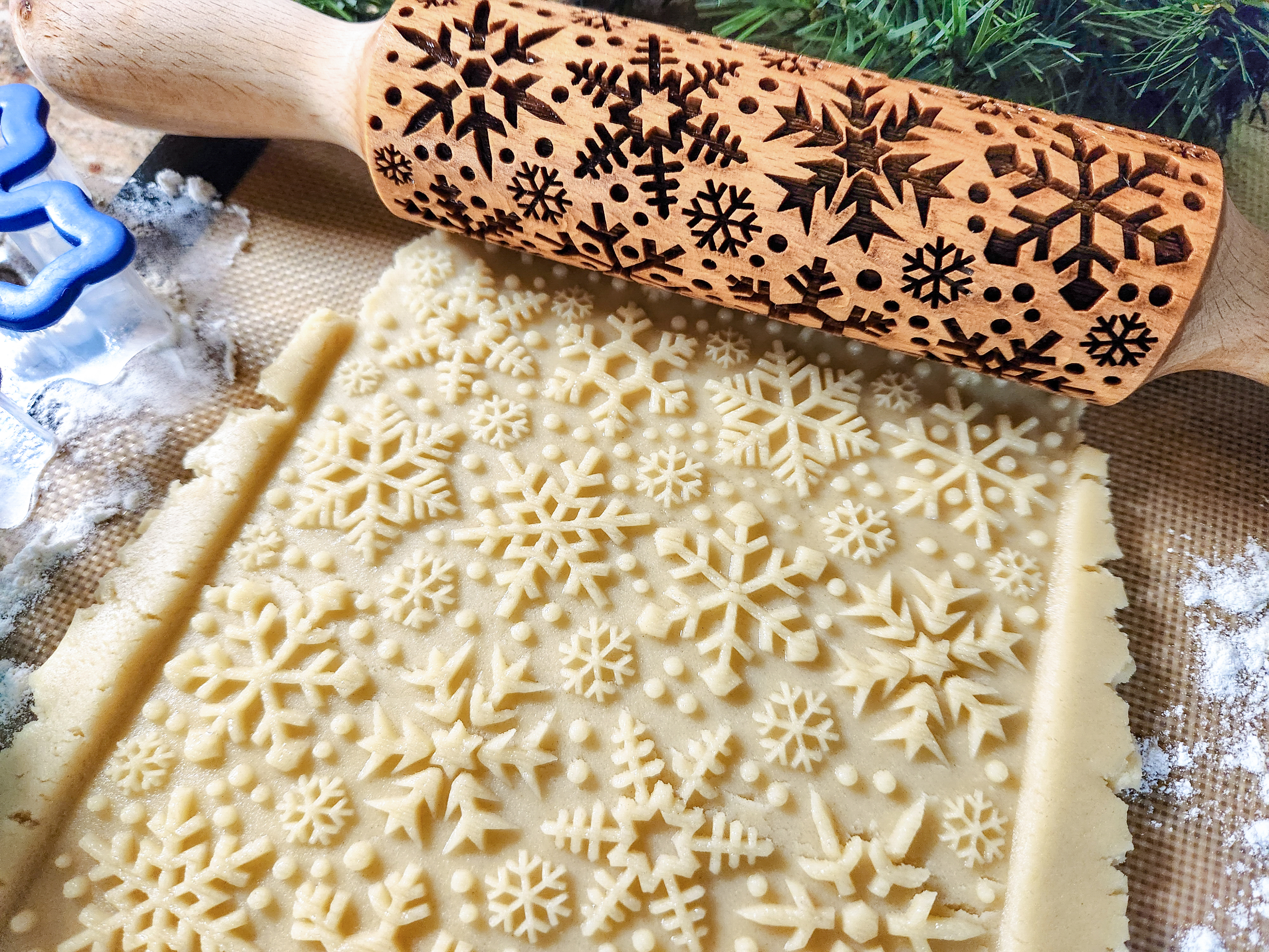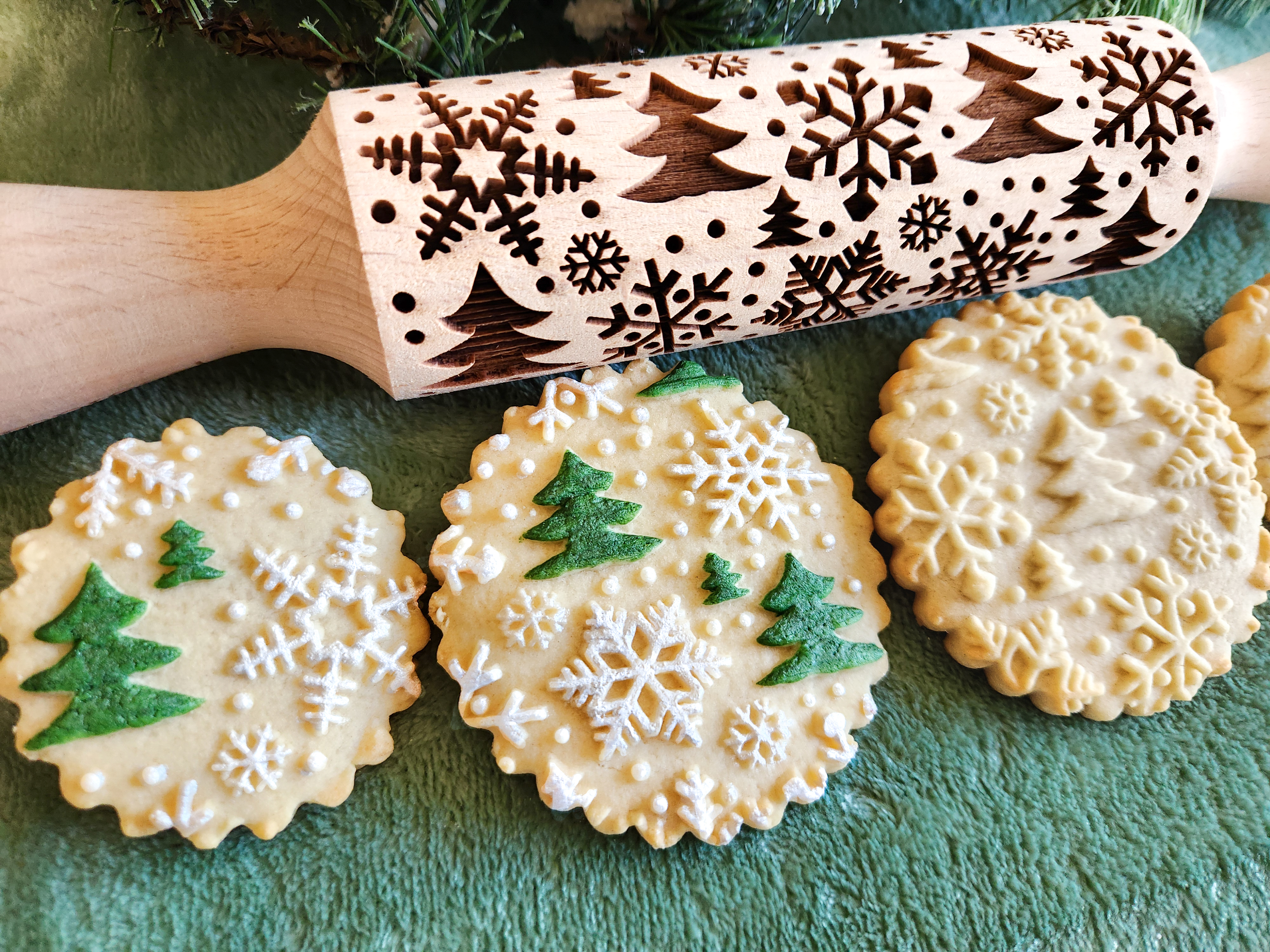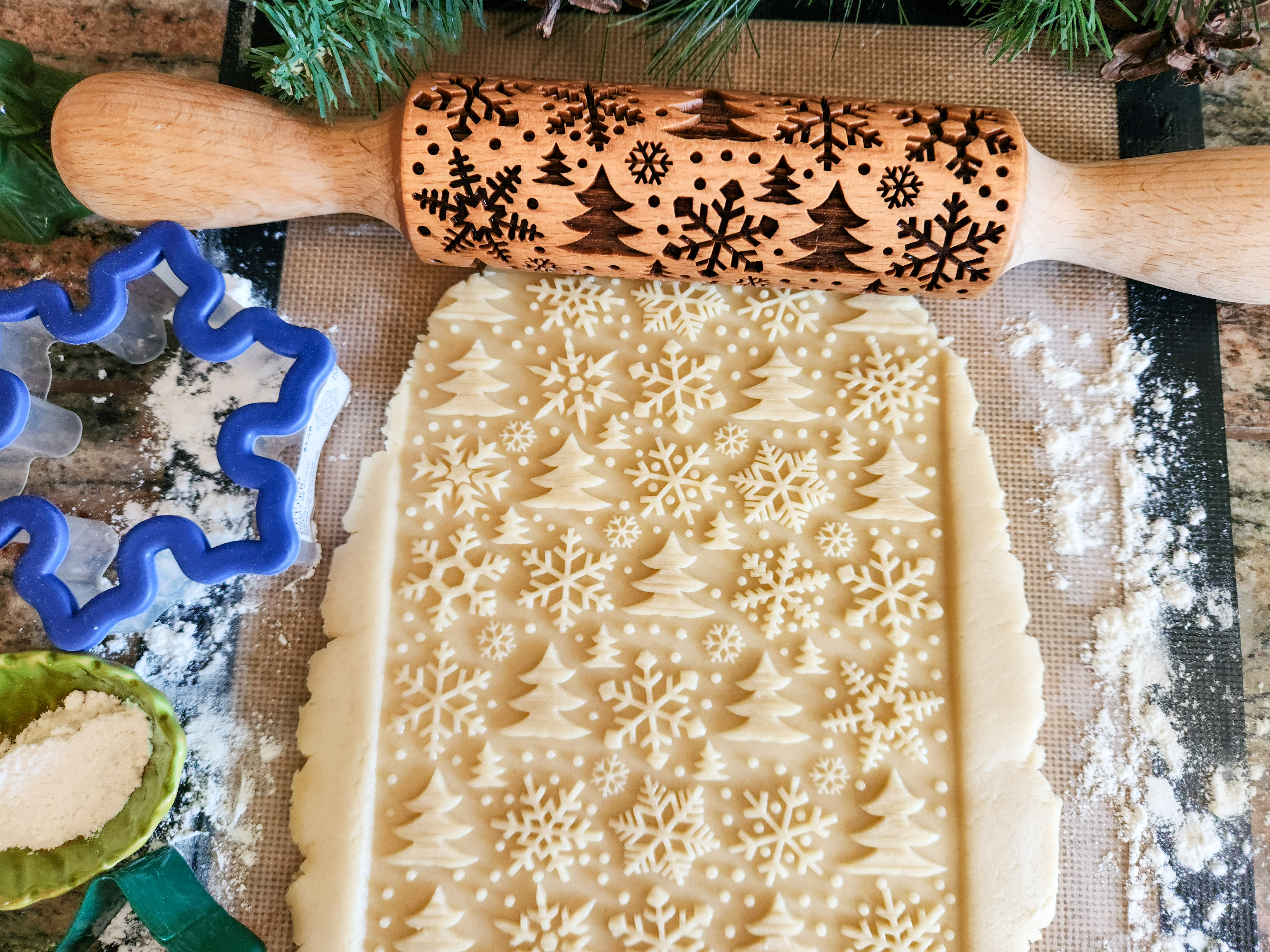 Snowflakes & Woodland Pine Trees Embossed Rolling Pin