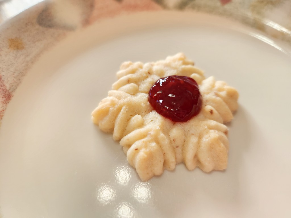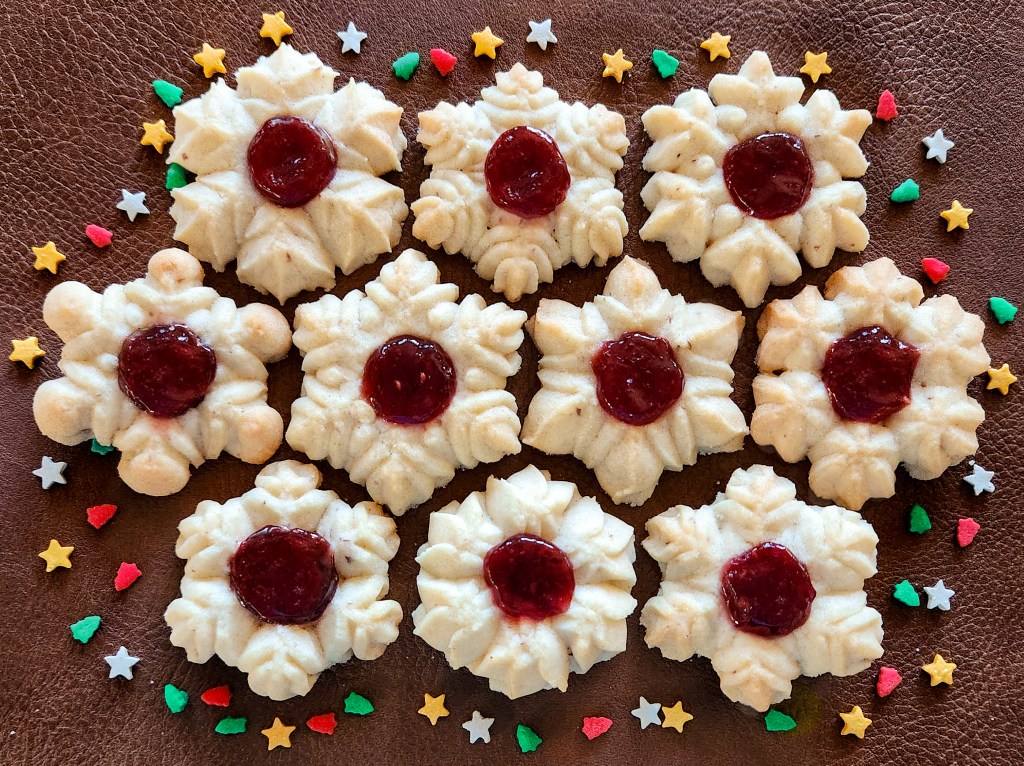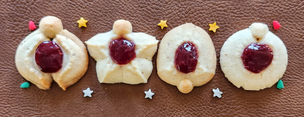 That’s it! Raspberry-Almond Thumbprint Snowflakes Spritz Cookies!
