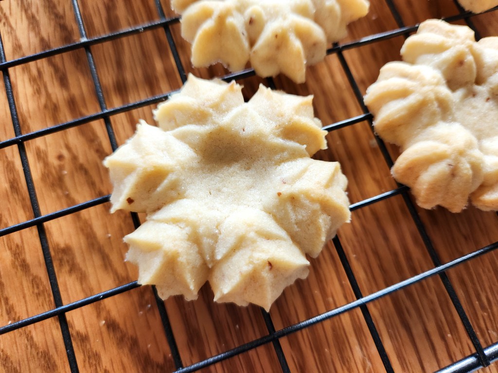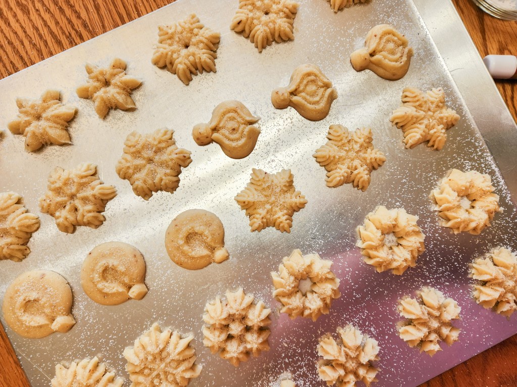 Bake in a 400 degree oven for 6-10 minutes or until the edges just barely begin to brown. Check them early and often as all ovens are different, and spritz can brown quickly once they start to go. Don’t overbake these. As soon as they look puffed up, dry, and set, they’re done. A little browning on the edge is ok, but the longer they bake the drier they will be! And they’re really good when not too dry!