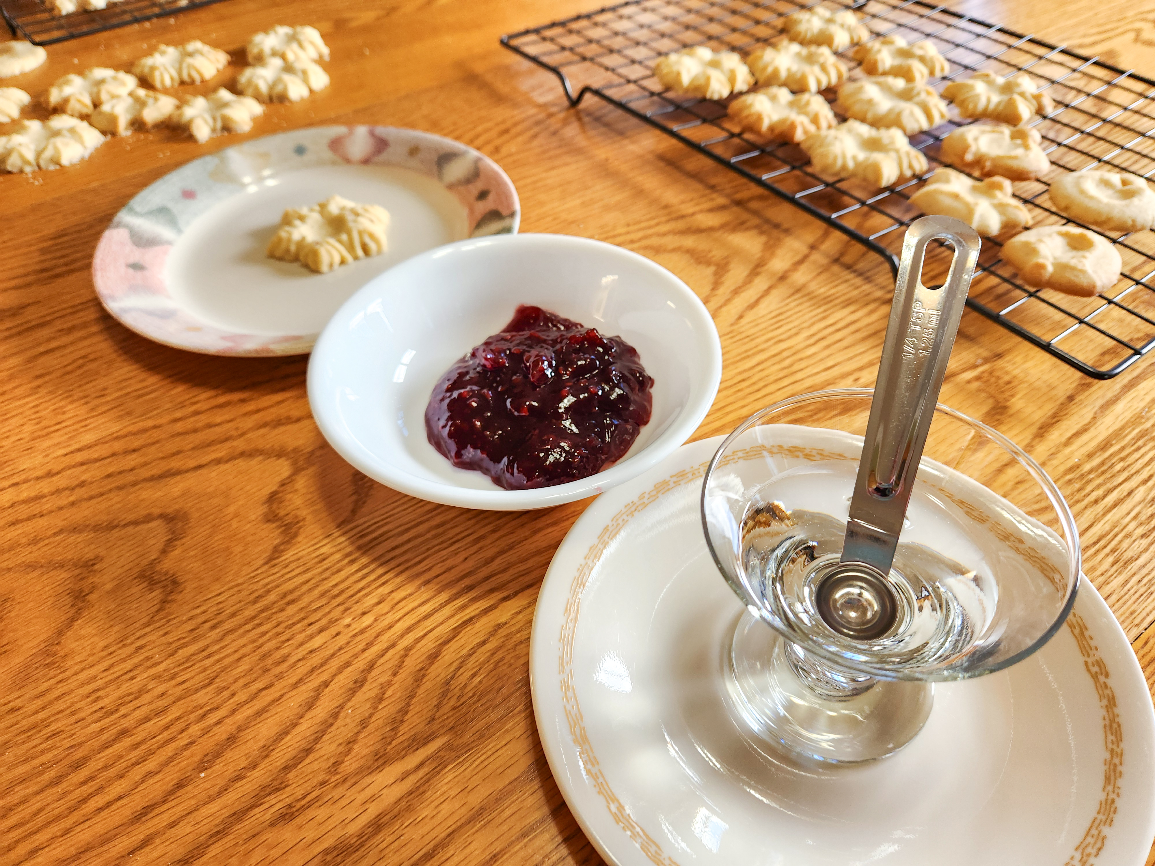 Now you have a choice to make! Traditionally, the jam is added to thumbprint cookies at this stage and baked along with the cookie. This sets the jam and makes it more stable at room temperature. I tried it that way and it was great! A very traditional flavor and texture.