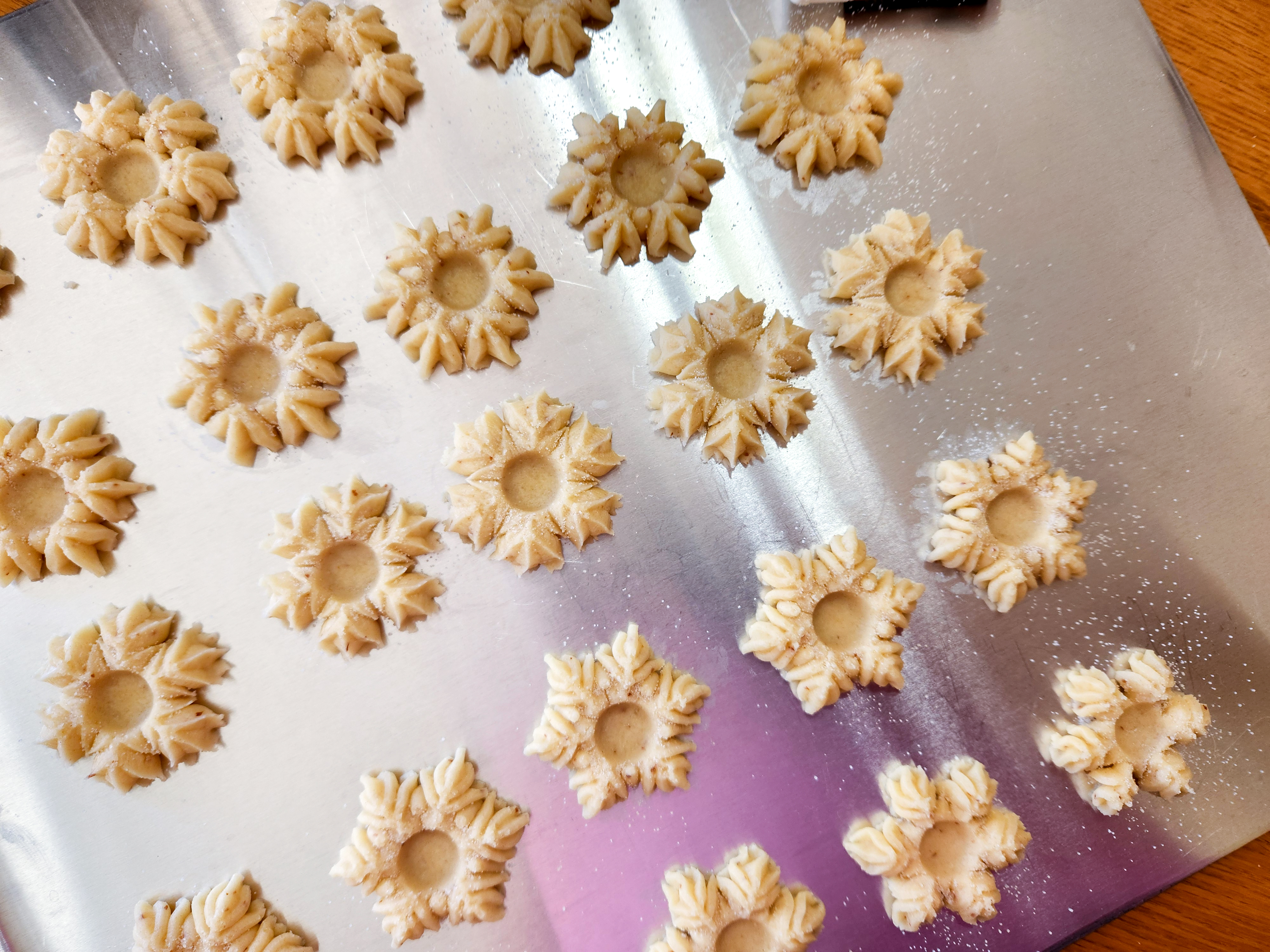 But then I decided that adding this already room temperature stable filling after baking was also a great option! Adding it later also allowed some of the snowflakes to hold their shapes better. This option is best if you will use the cookies within a day or two. The longer they dry out, the more they taste like the baked filling version anyway. So if you’re going to be eating these for days and days, probably bake the filling.