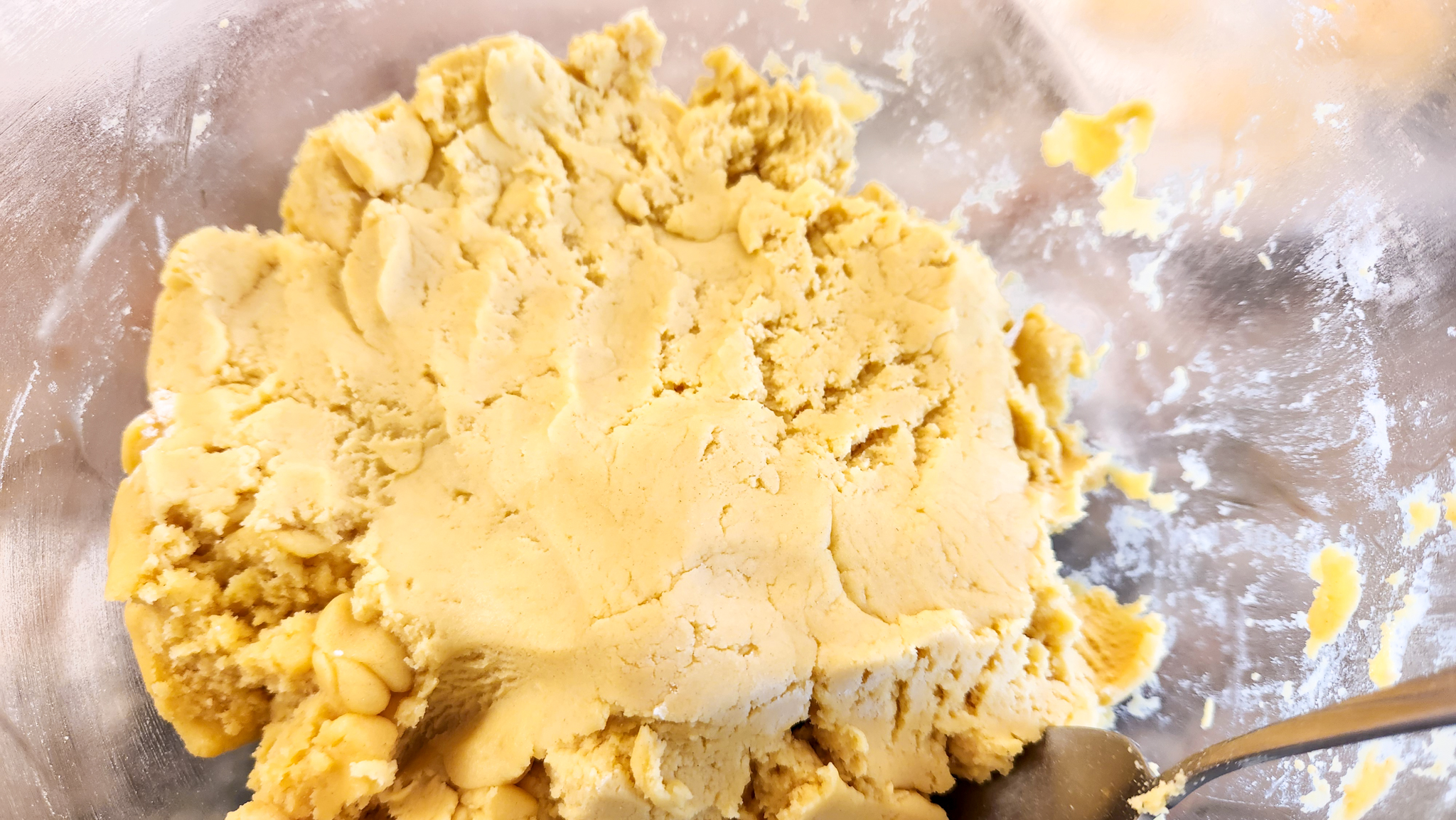 Next add the flour mixture a little at a time, mixing on a slow speed until a soft dough forms. Perfect spritz dough has a soft malleable texture that is not too sticky or too stiff. You can always knead it by hand at the end if your mixer is leaving any flour unincorporated. Smooshing it into a play-dough like texture by hand is actually pretty fun. Always remember that you can tweak overly stiff dough by adding more vanilla a teaspoon at a time (or by the tablespoon if it’s particularly stiff), or tweak overly soft or sticky dough by adding flour a tablespoon at a time. Watch some of my videos to see what a correct spritz dough texture looks like.