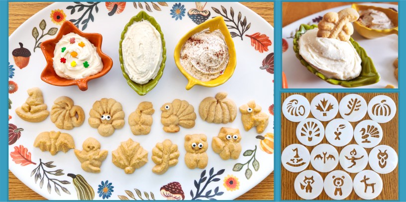 For pressing these cookies, we have quite a few disk sets with shapes that are cute for fall. I chose a few disks from Halloween, Leaves & Trees, Thanksgiving, and Woodland. We have 367 disk shapes, so there are plenty to choose from!