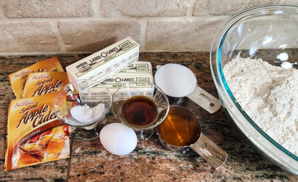 4 packets of Alpine Spiced Apple Cider mix: 6 Tablespoons for the dough and the rest for sprinkling on top of pressed cookies before baking