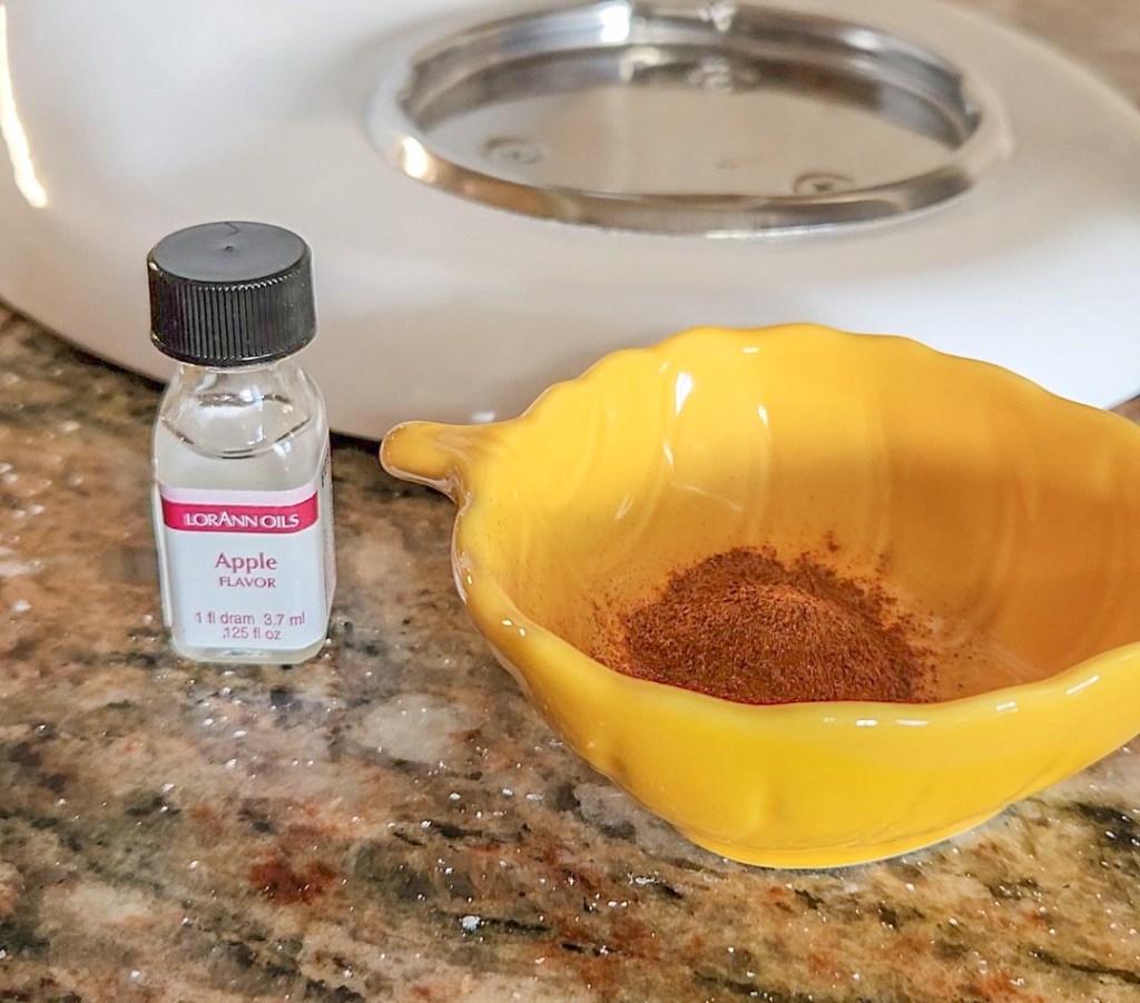 Add flavorings like cinnamon, pumpkin spices, or flavors like LorAnn Oils Apple Flavor. I made apple cinnamon by using the apple flavor and cinnamon. Add a little at a time until you like the flavor. No need to measure just do it “to taste”. I left the other half plain fabulous vanilla! (I LOVE vanilla!)