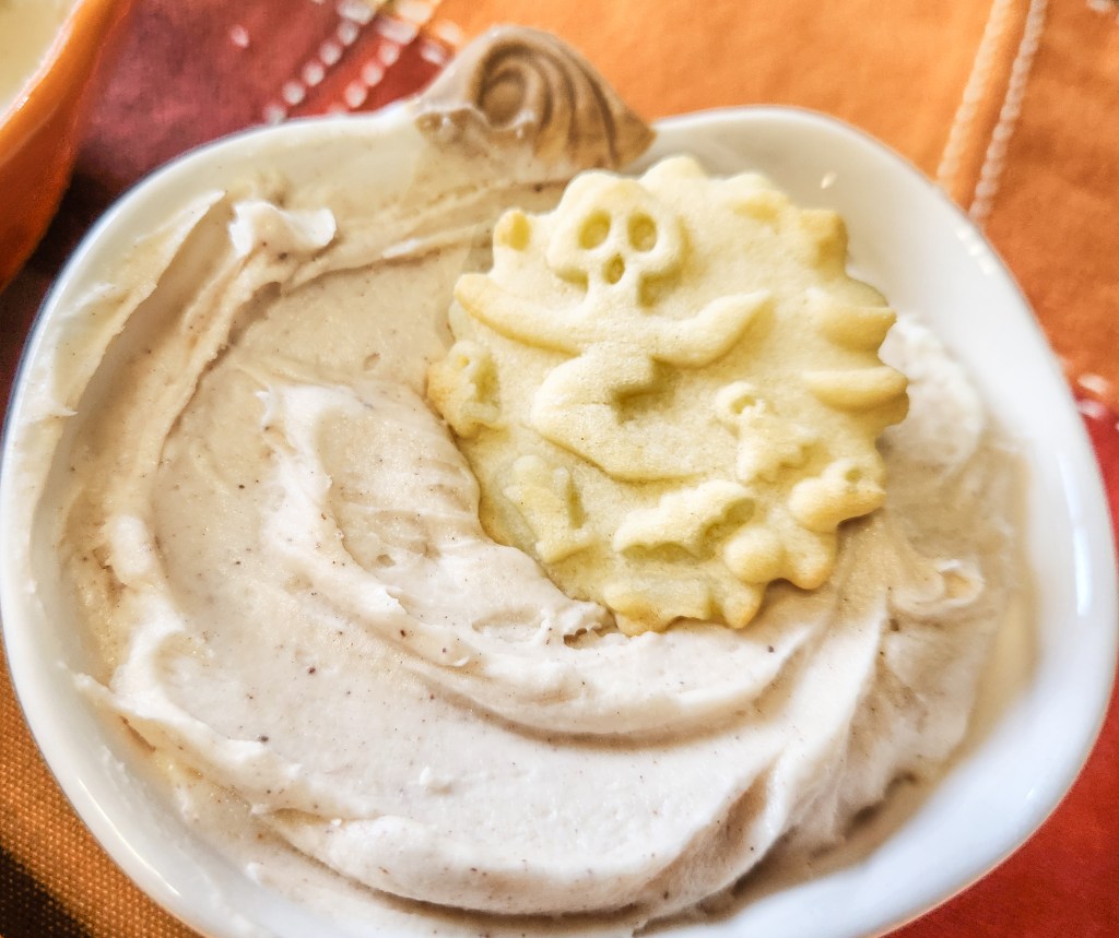 I used my favorite vanilla rolled and embossed cookie recipe, and my “cookie dip” buttercream. I made both the regular vanilla flavor ( it is sooo vanilla!) and also apple cinnamon. My tasters all went nuts for that one. 😉