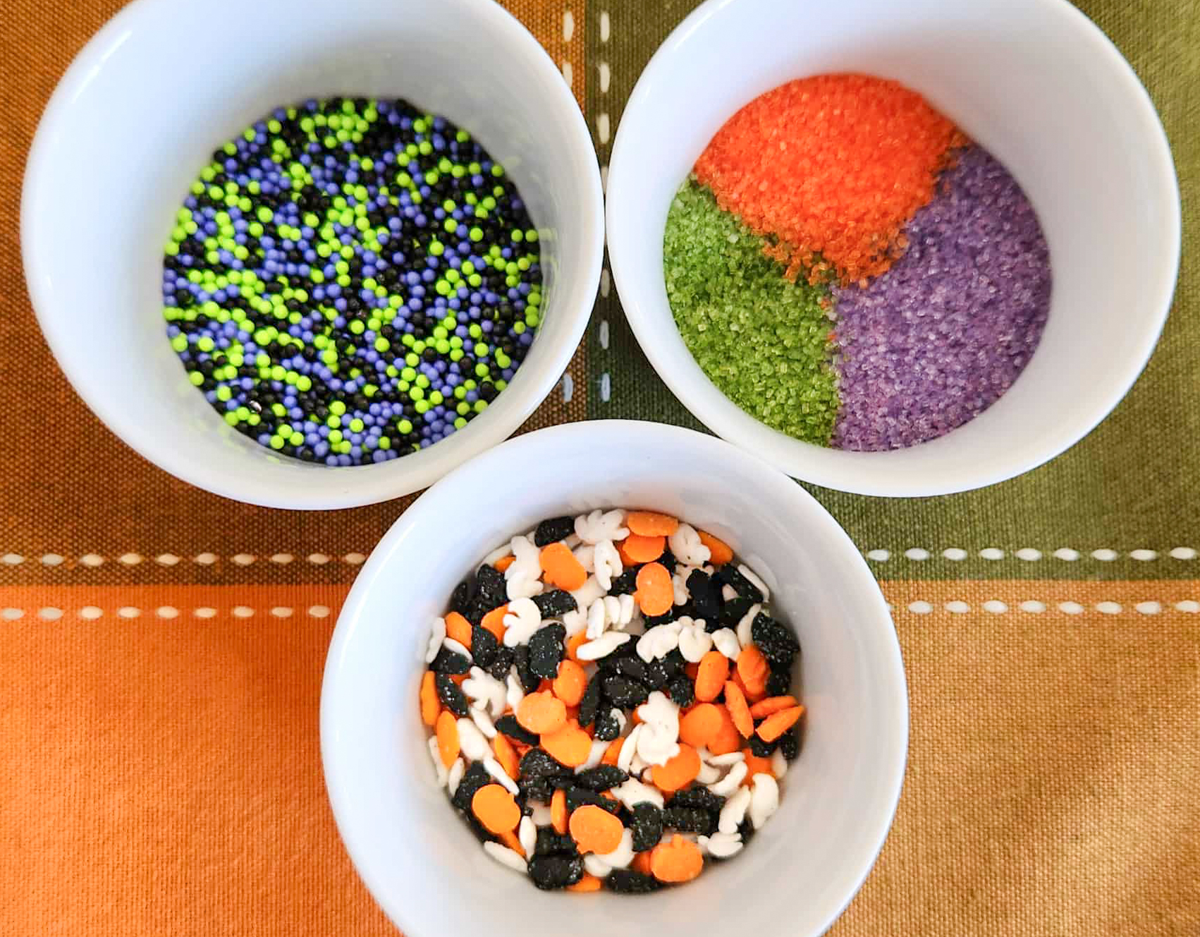 Now dip these yummy, spooky treats in that glorious buttercream! Then dip them in sprinkles!