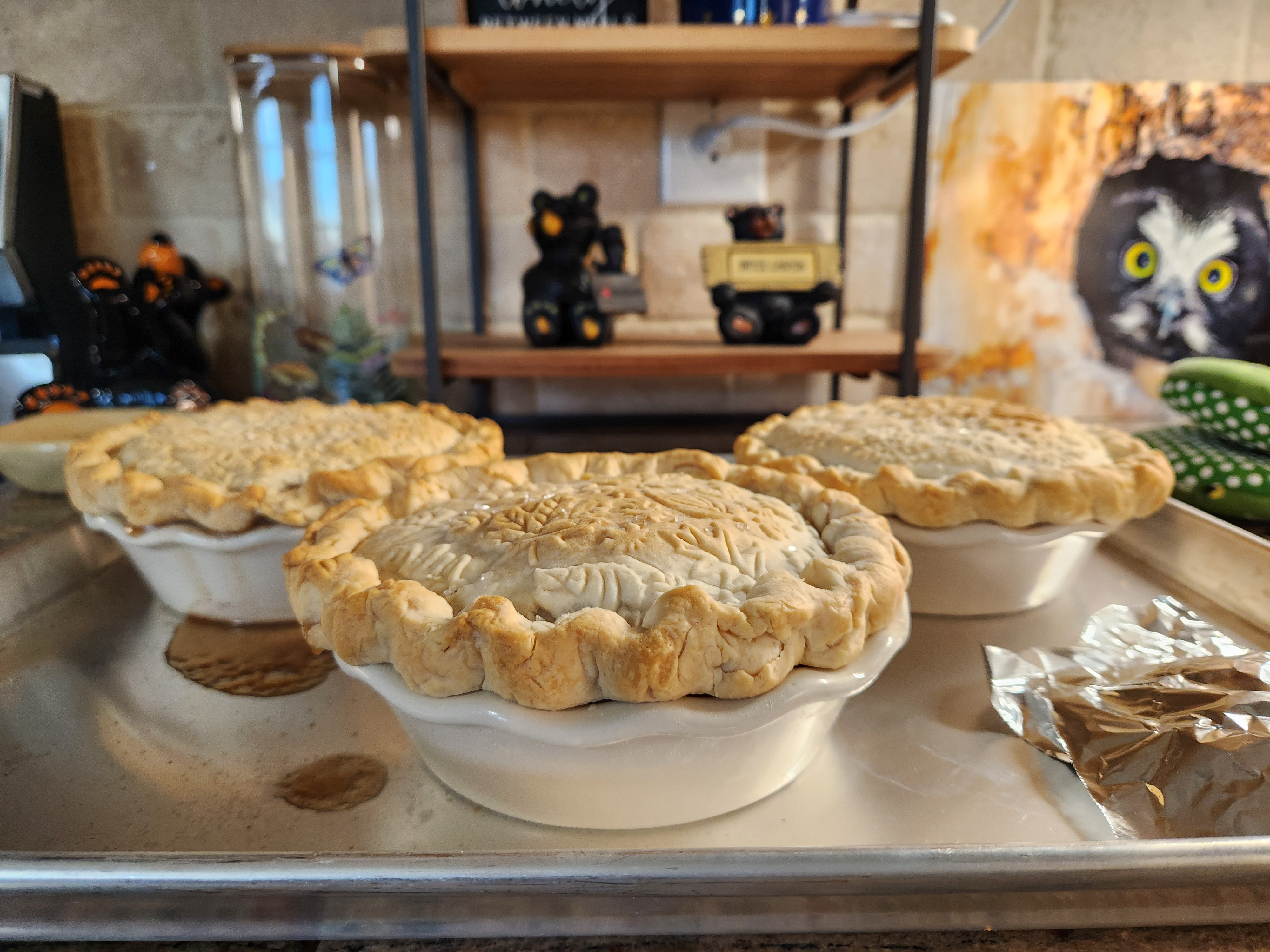 (EDIT after I published this recipe! Someone asked on social media how I vented the pies. Great catch! I did not show it and I meant to. Full transparency, I kept forgetting to add the slits in the top to vent. But, my fingers had pierced the crust as I rolled and crimped the edge. They all vented that way, along the edges. I meant to add that info in this recipe, so I’m editing it in now. Thanks to the commenter for the keen observation, it’s appreciated!)