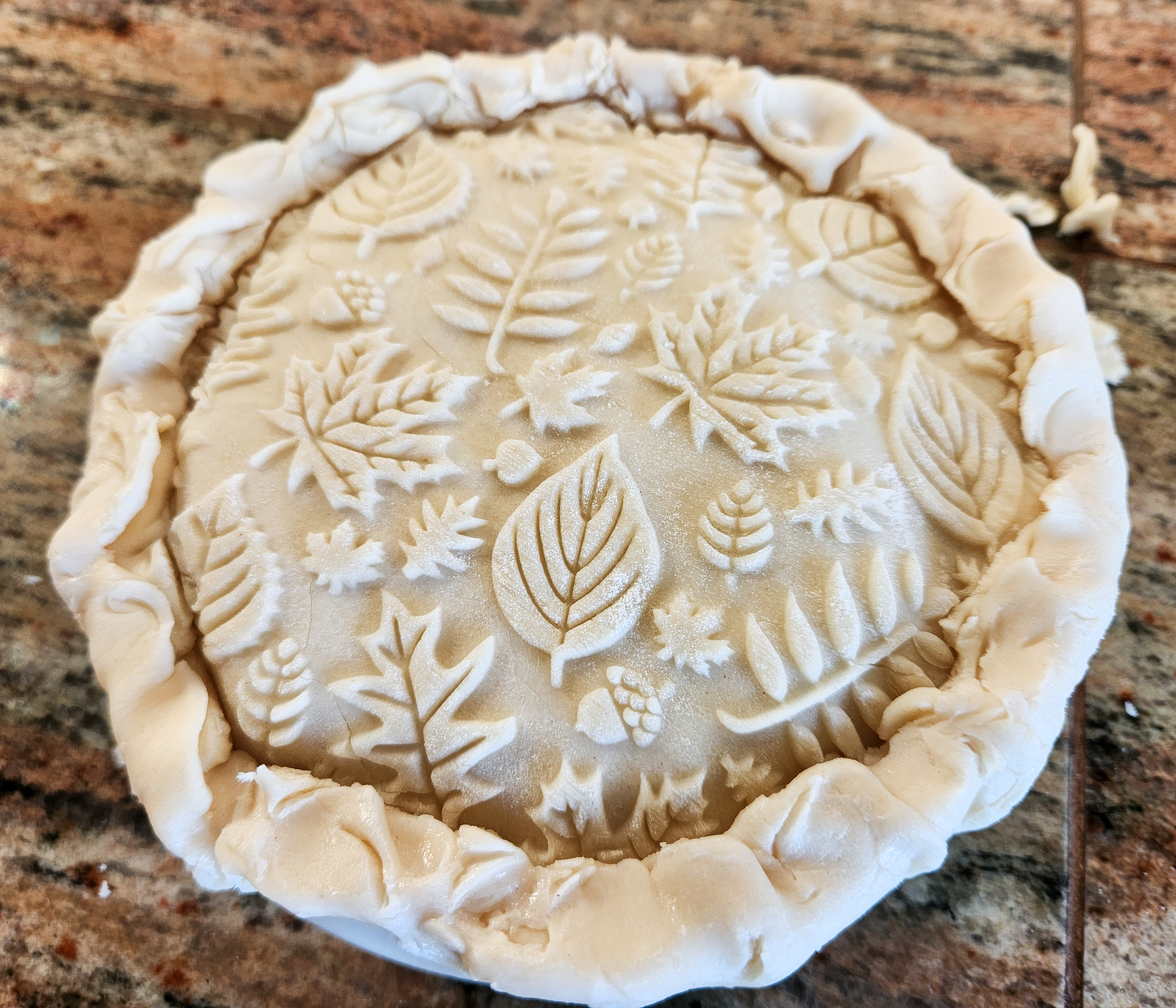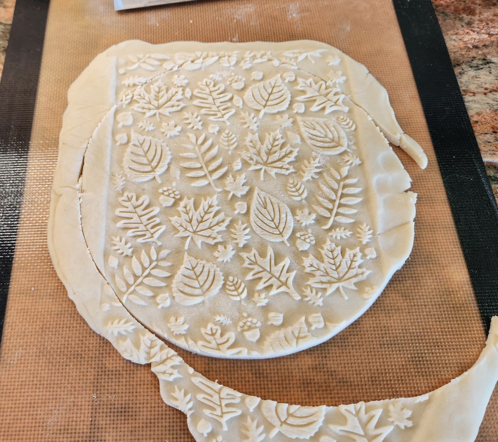 Here’s a quick video of me rolling the crust dough out with the Fall Leaves Large Designs Pin: