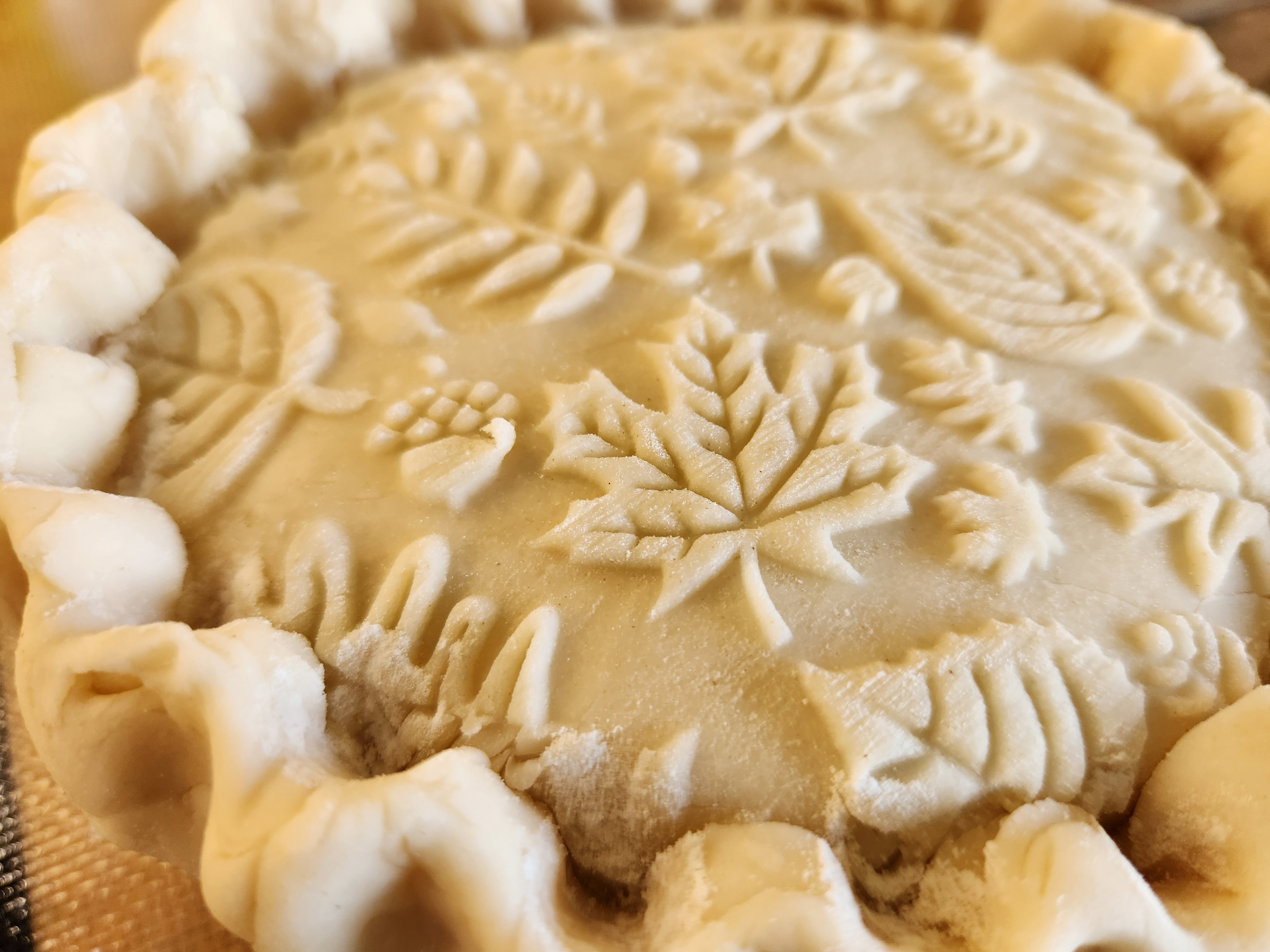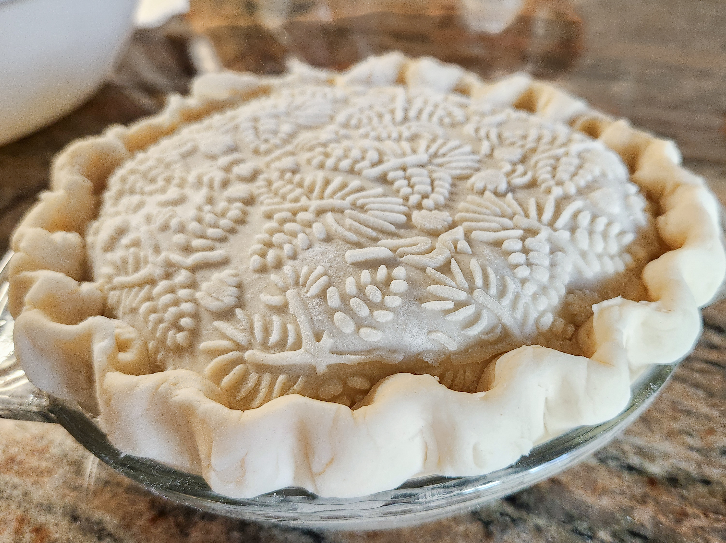 This recipe post is really about embossing the crust so whatever crust dough and filling you choose, follow along and I’ll show you how easy this can be.