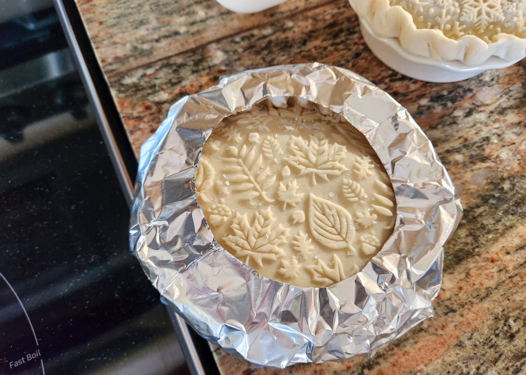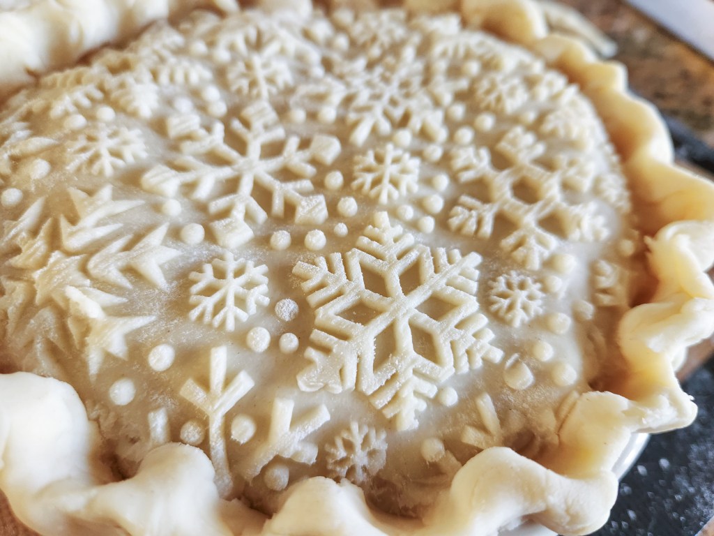 For this post I used four pins: Fall Leaves Large Designs, Snowflakes & Woodland Pine Trees, Snowflakes Large Designs, and Pinecones & Cardinals. It wasn’t until I had finished baking that I realized how cute the Pinecones & Cardinals would be, so I quickly made a fourth pie to test it out. So cute. I love them all! I show 2 other Thanksgiving & Christmas pins at the bottom of this post that would be adorable, too.