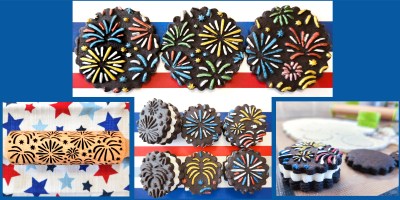 Embossed Rolling Pin Recipes, Flowers, Fourth of July, Mother's Day, sandwich cookies, Spring & Summer Cookies